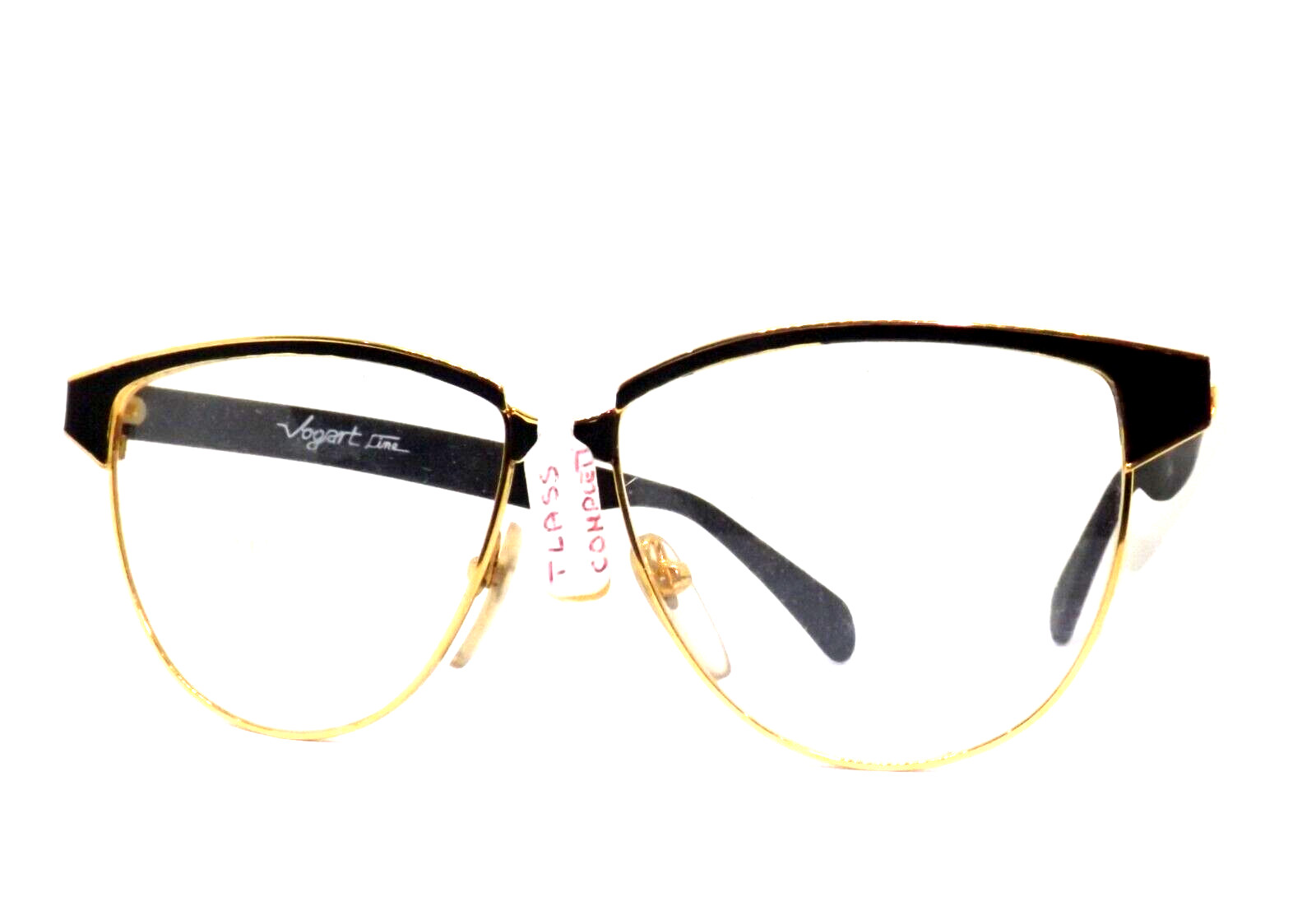 Vintage Women's Eyeglass Frame 80s Gold Black ITALIA 668 VOGART