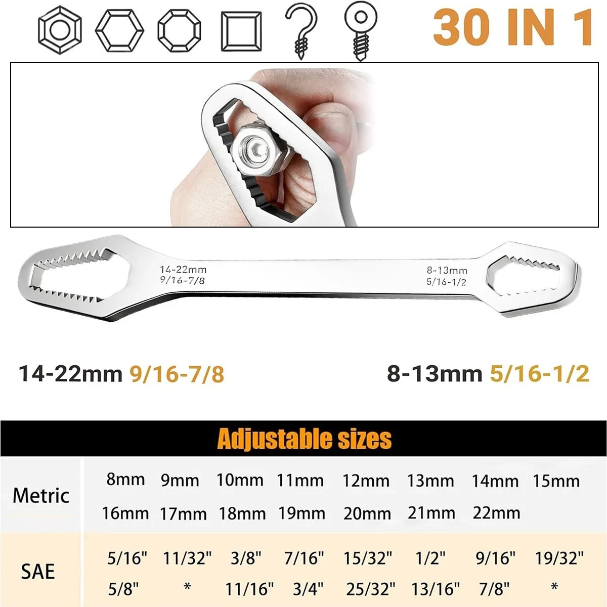 8-22mm Universal Torx Wrench Self-tightening Adjustable Glasses Wrench Board Dou