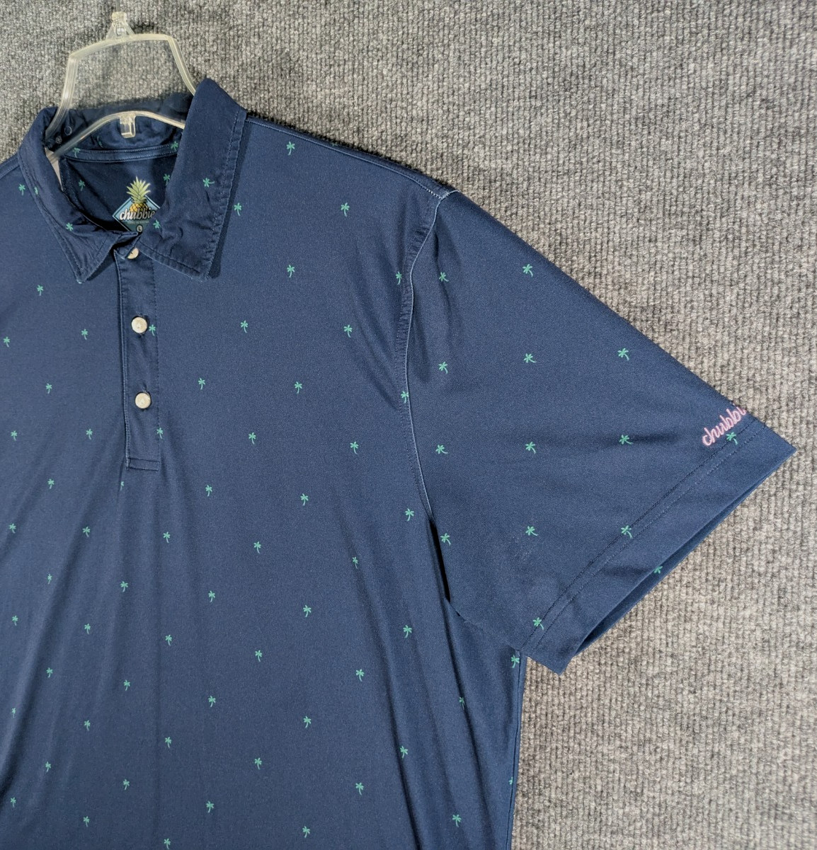 как выглядит Chubbies Polo Shirt Mens Large Navy Palm Tree Print Stretch Performance Golf фото