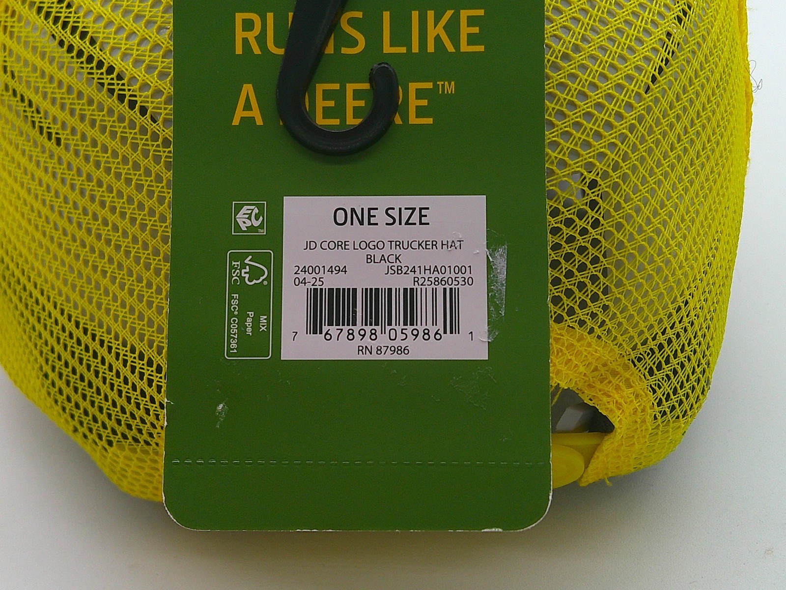 John Deere Hat Cap Snap Back Boys One Size Black Yellow Trucker Mesh Farm