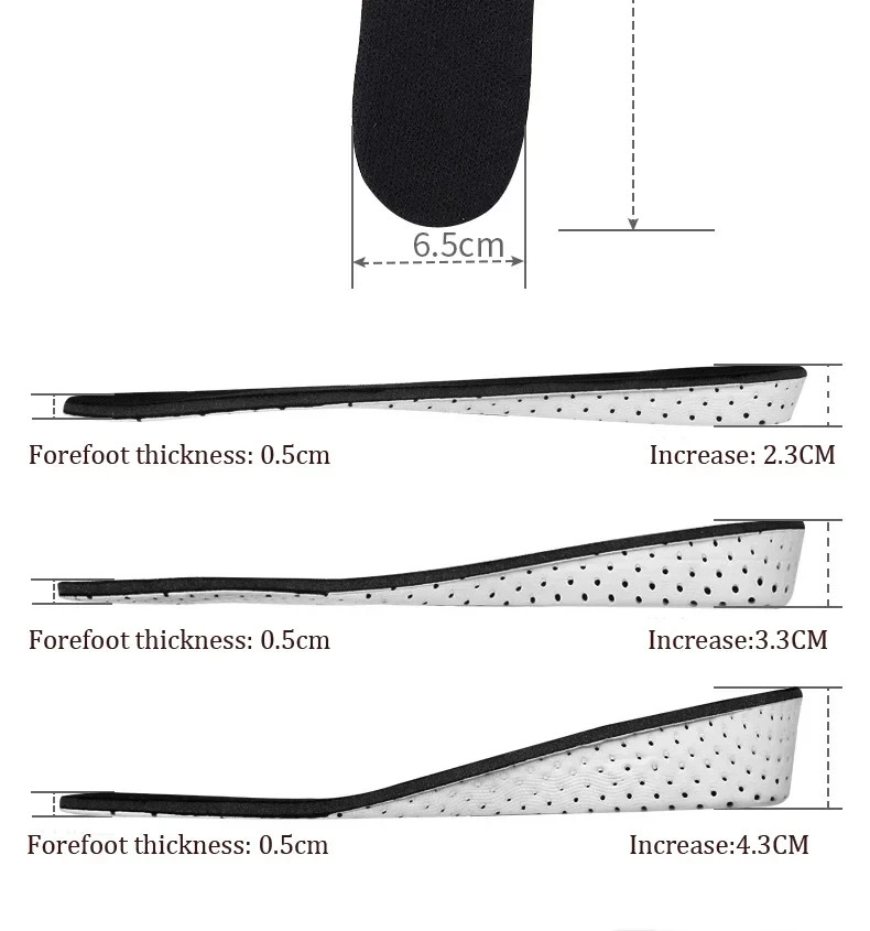 Height Increase Insoles 1 Pair EVA Shock Absorbing Shoe Pads 2.3 4.3cm