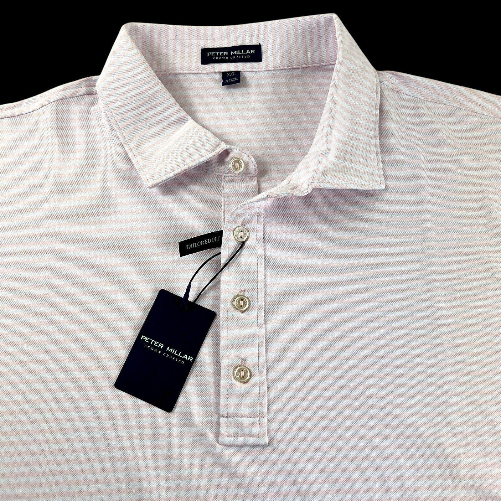 Peter Millar Crown Crafted Striped Performance Stretch Polo Shirt Pink 2XL
