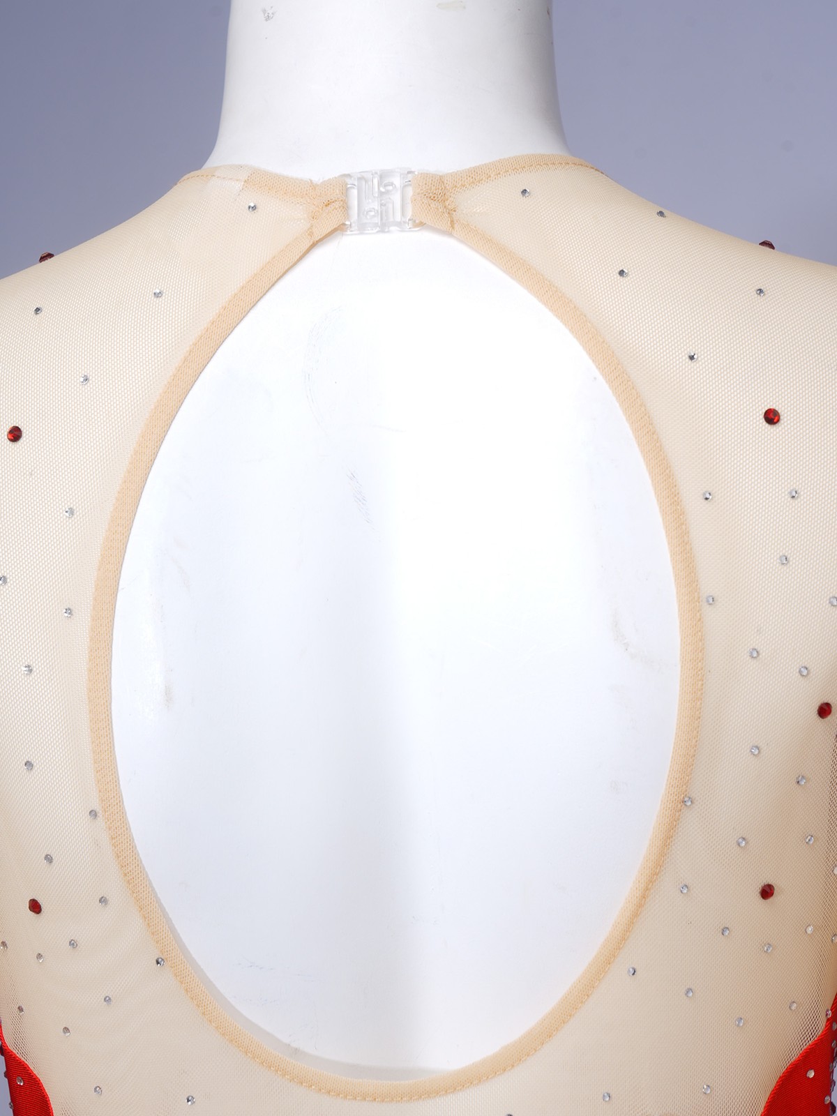 Women Gymnastics Shiny Bodysuit Dance Figure Skating Dress Sheer Mesh Leotard