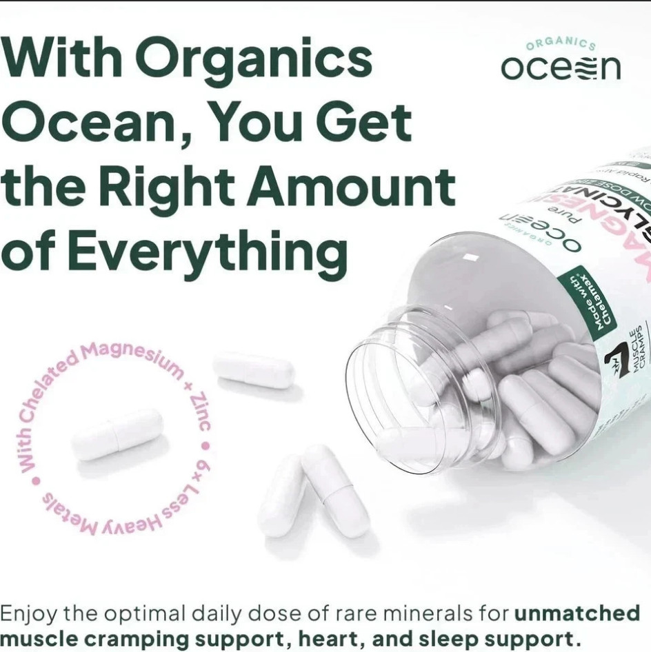 Organics Ocean Pure Magnesium Glycinate Zinc Strength Chelated Fast - 3 bottles