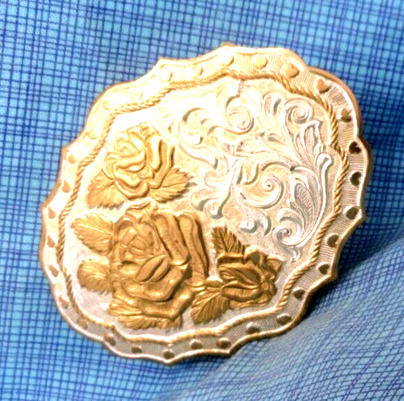 как выглядит Western Rose Hearts Belt Buckle Filigree Floral Scroll Vtg 80s Crumrine.NOX754 фото