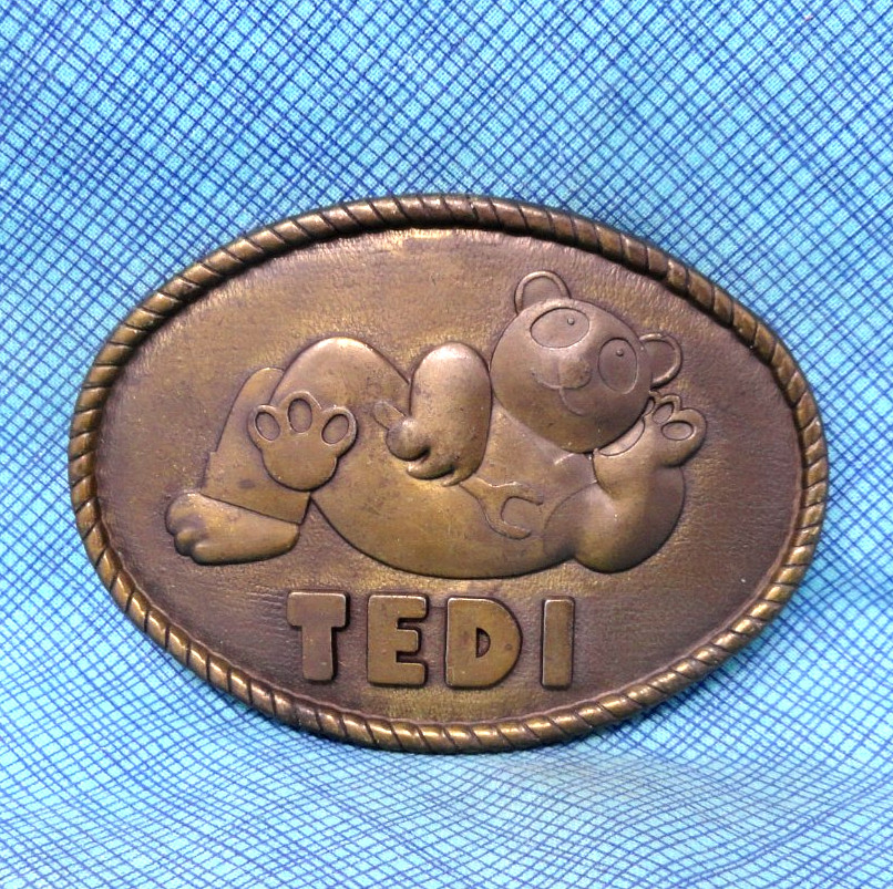 TEDI Bear Belt Buckle Name Mechanic Handyman Craftsman Plumber Vtg 70s RJ.GMP935