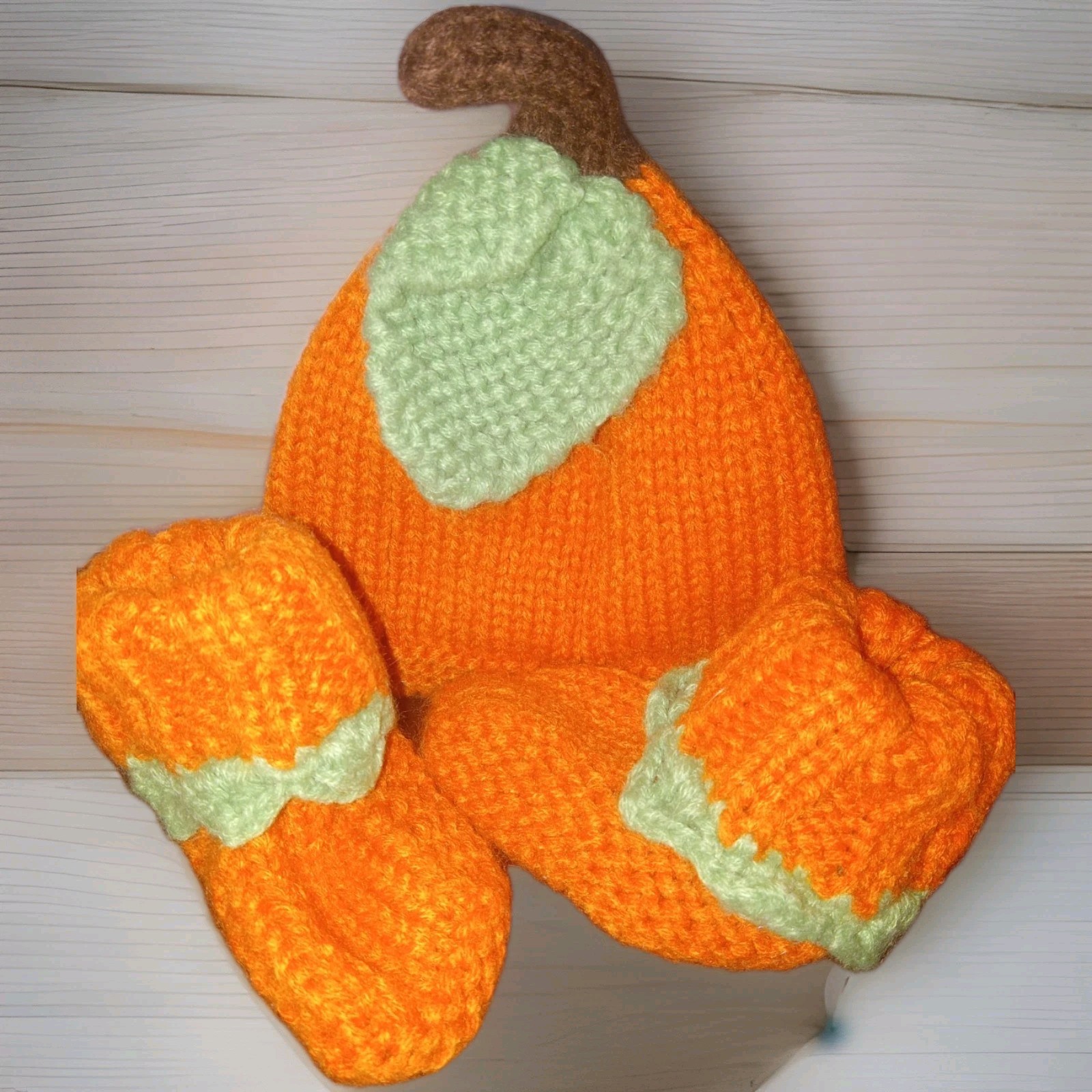 как выглядит Baby Pumpkin Autumn Hat and Sock Booties 0-6 months Little Me Cute Fall Gift фото