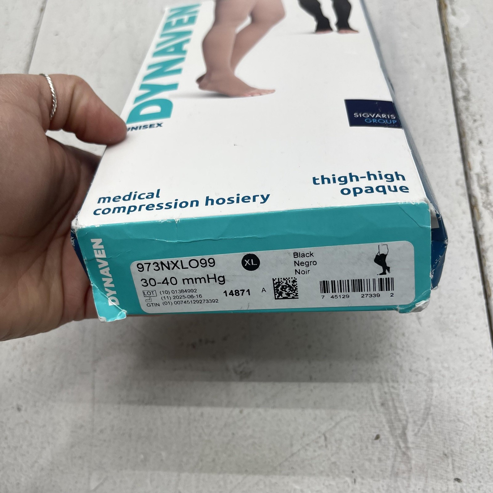 Sigvaris Dynaven Thigh High Compression Hose XL Black 30-40mmHg Open Toe Unisex