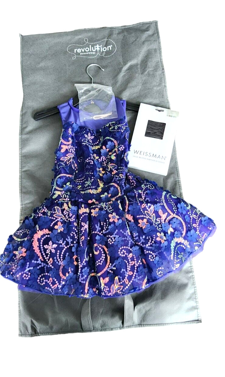 Revolution Dance Costume Competition Blue Floral Dress Size MC
