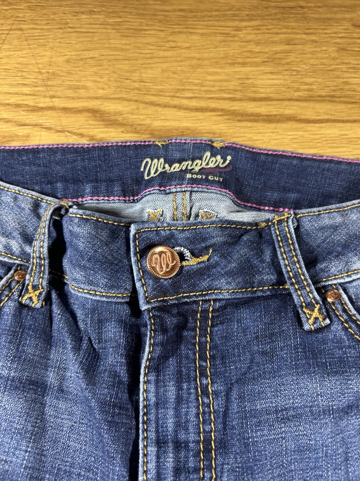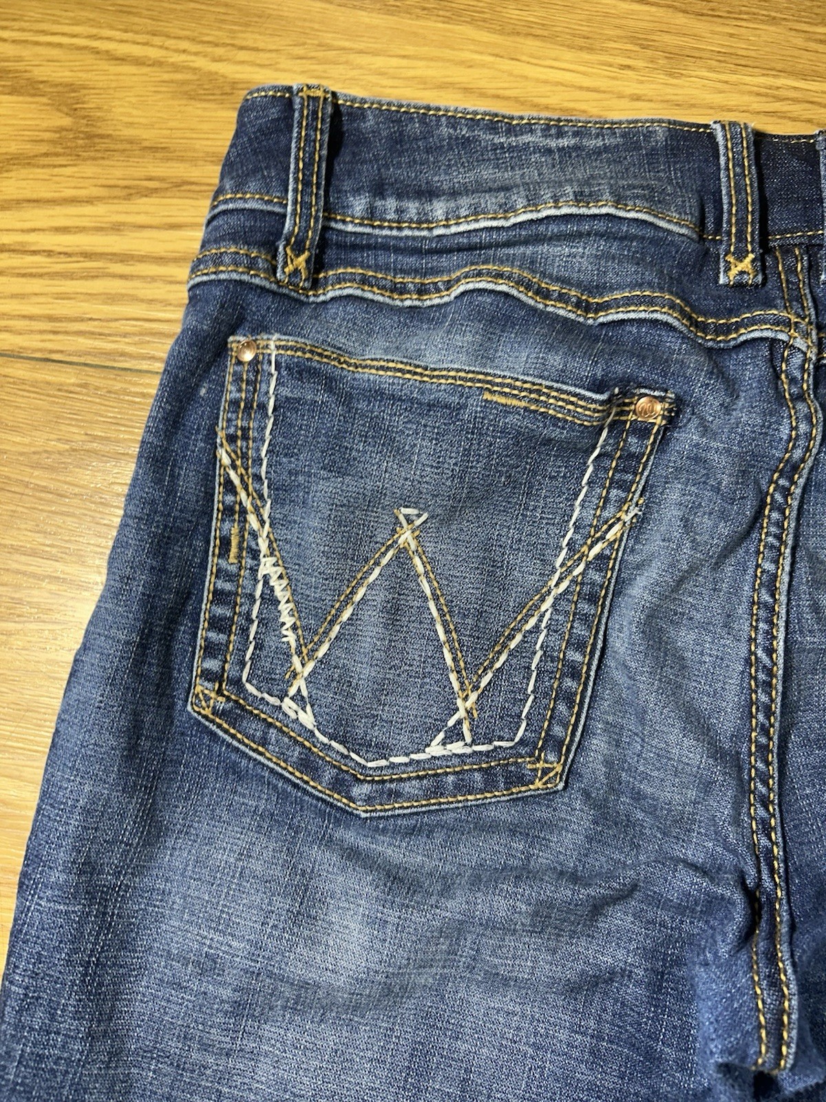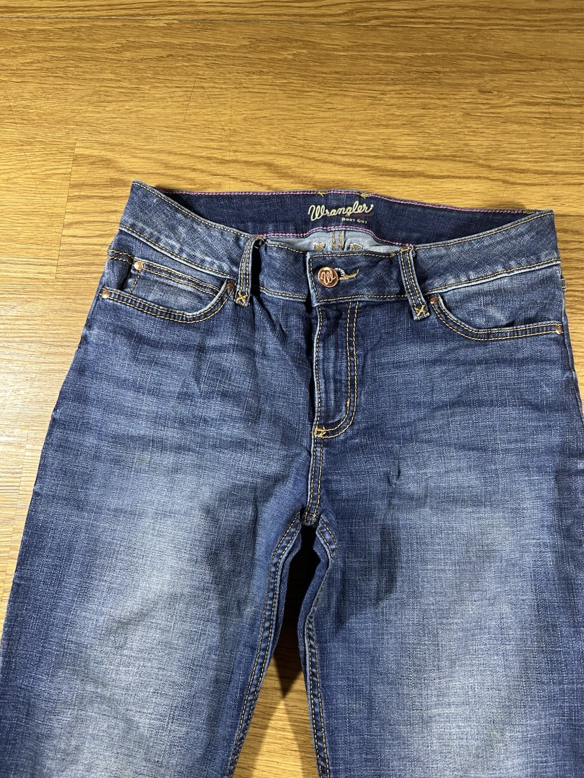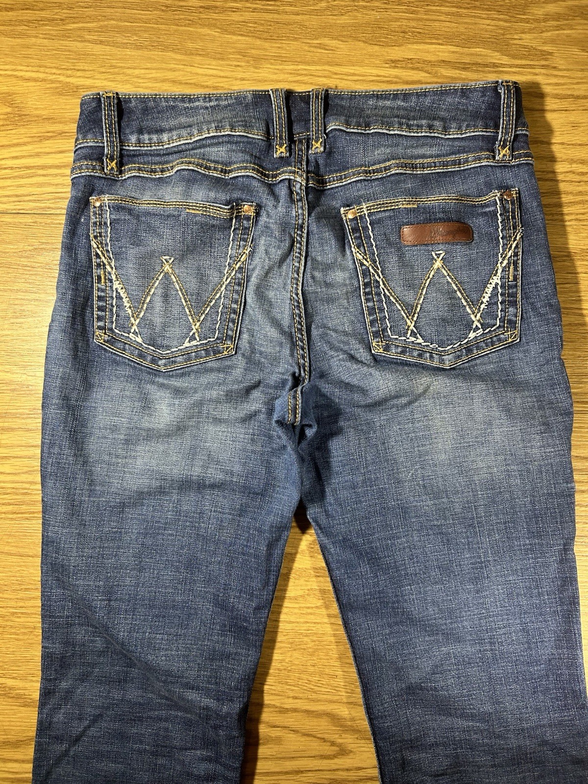 как выглядит Wrangler Boot Cut Cowgirl Jeans Womens 31x32.5 in Blue Denim Mid Rise Dark Wash фото