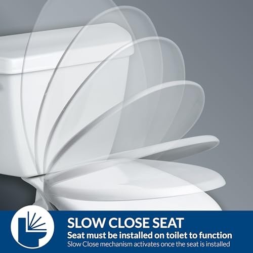 Elongated Slow Close Toilet Seat - Easy Clean Hinges, Durable Plastic, White