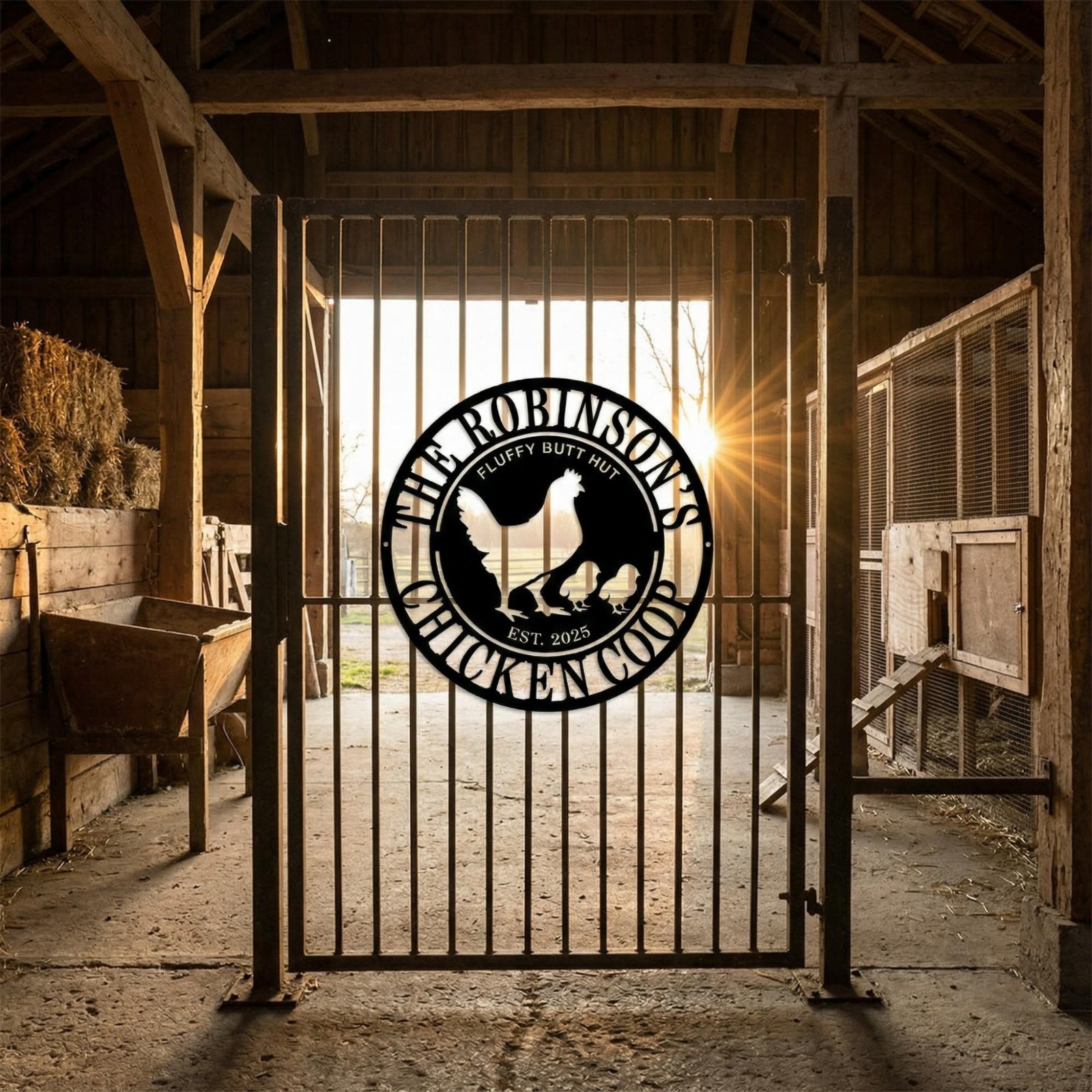 Personalized Chicken Coop Sign Custom Fluffy Butt Hut Metal Decor Family Name