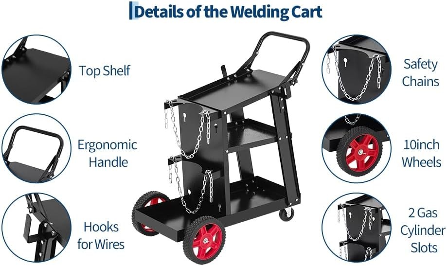 Welding Cart 3 Tiers Welder Cart with Swivel Wheels,Safety Chains Heavy Duty US