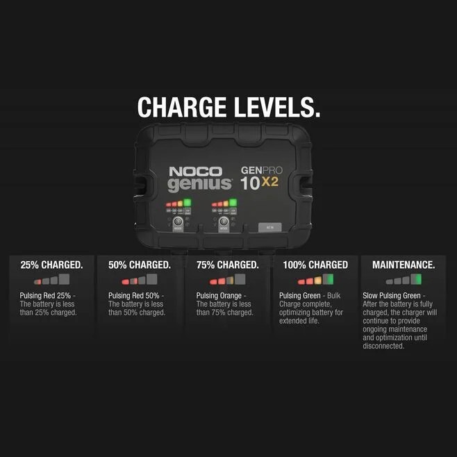 NOCO GENPRO10X2 Onboard Marine Battery Charger 20 Amp 12V 2 Bank Waterproof