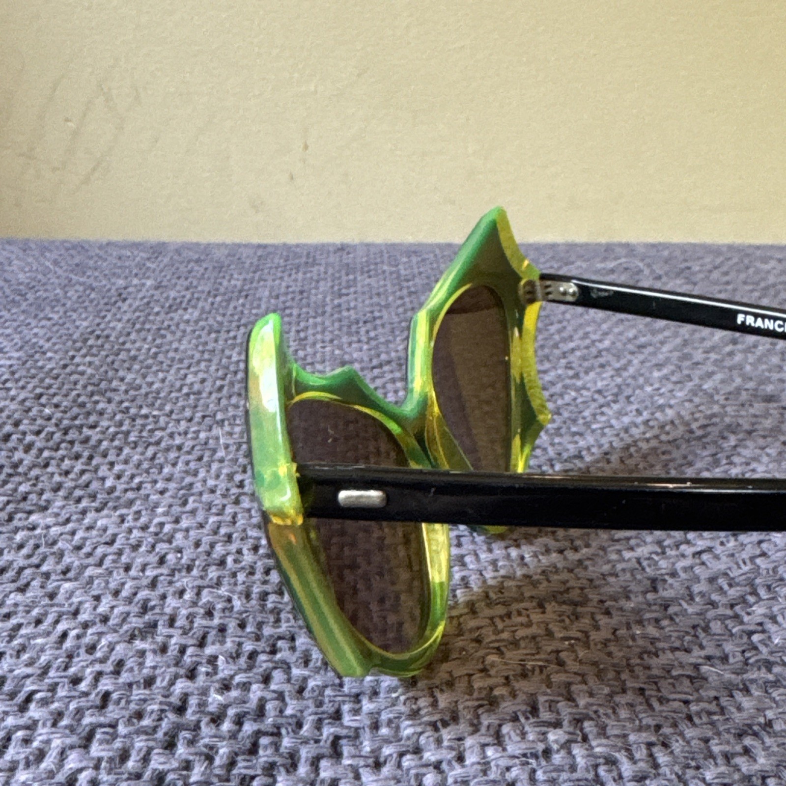 Vintage Cat Eye Sunglasses Frame Black Green Plastic France Made