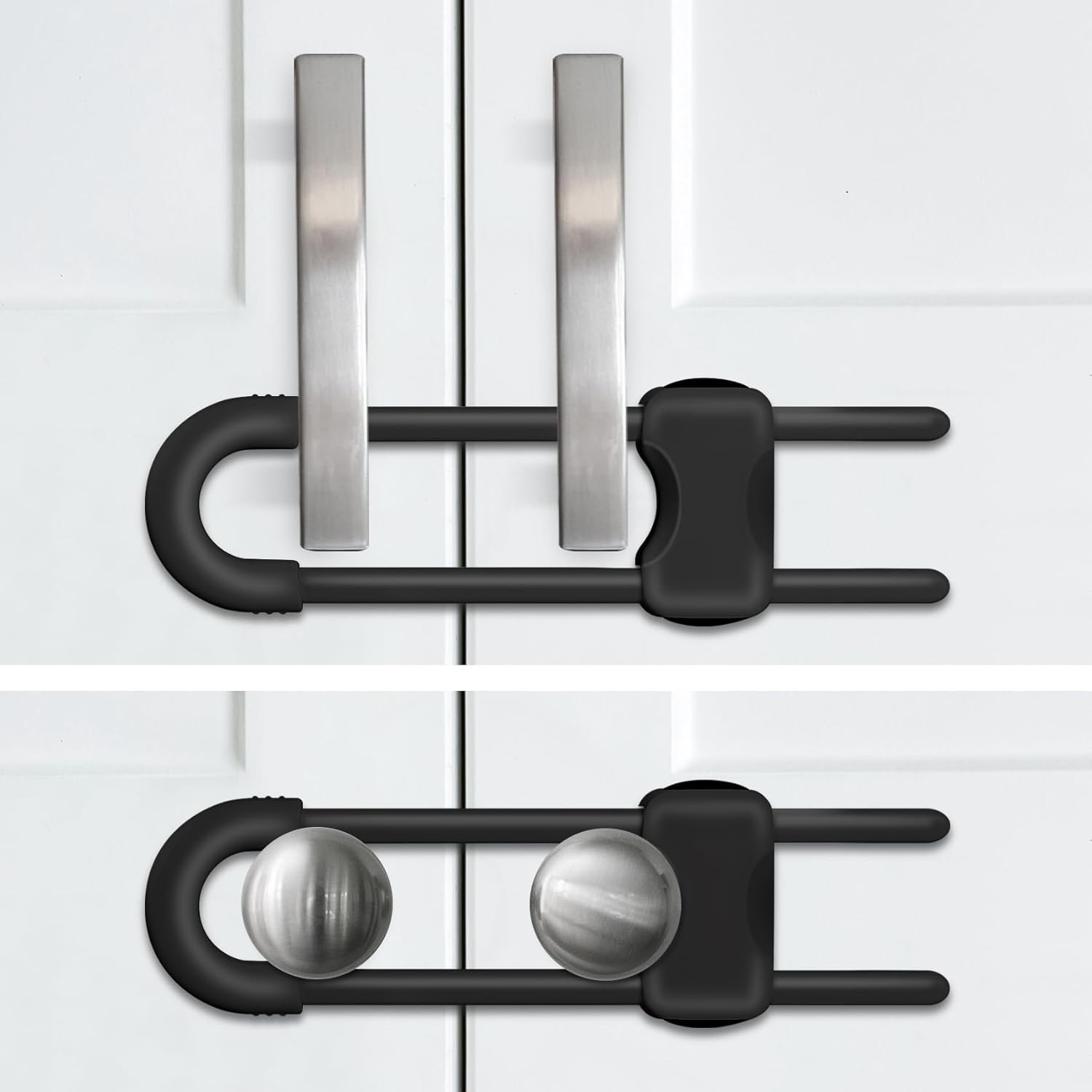 2 Pack U-Shaped Child Safety Locks for Cabinets - Quick, Easy Installation