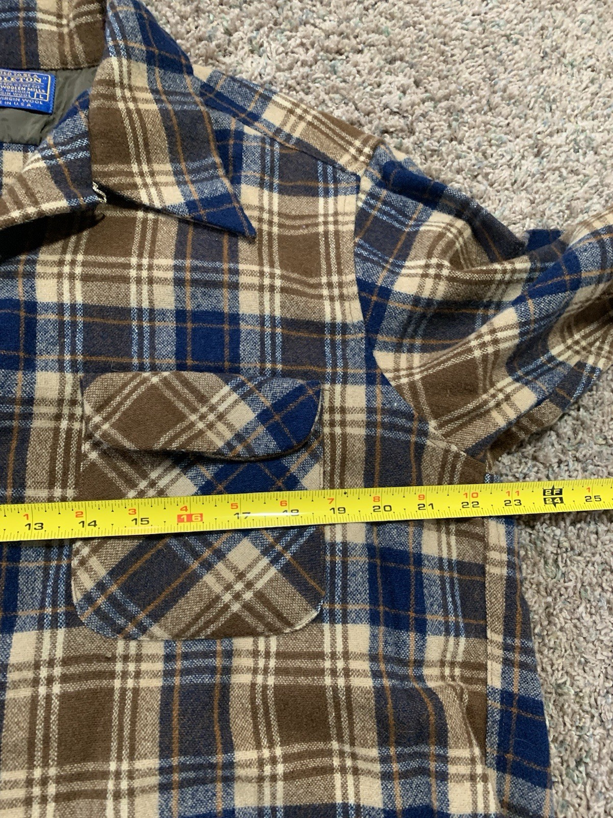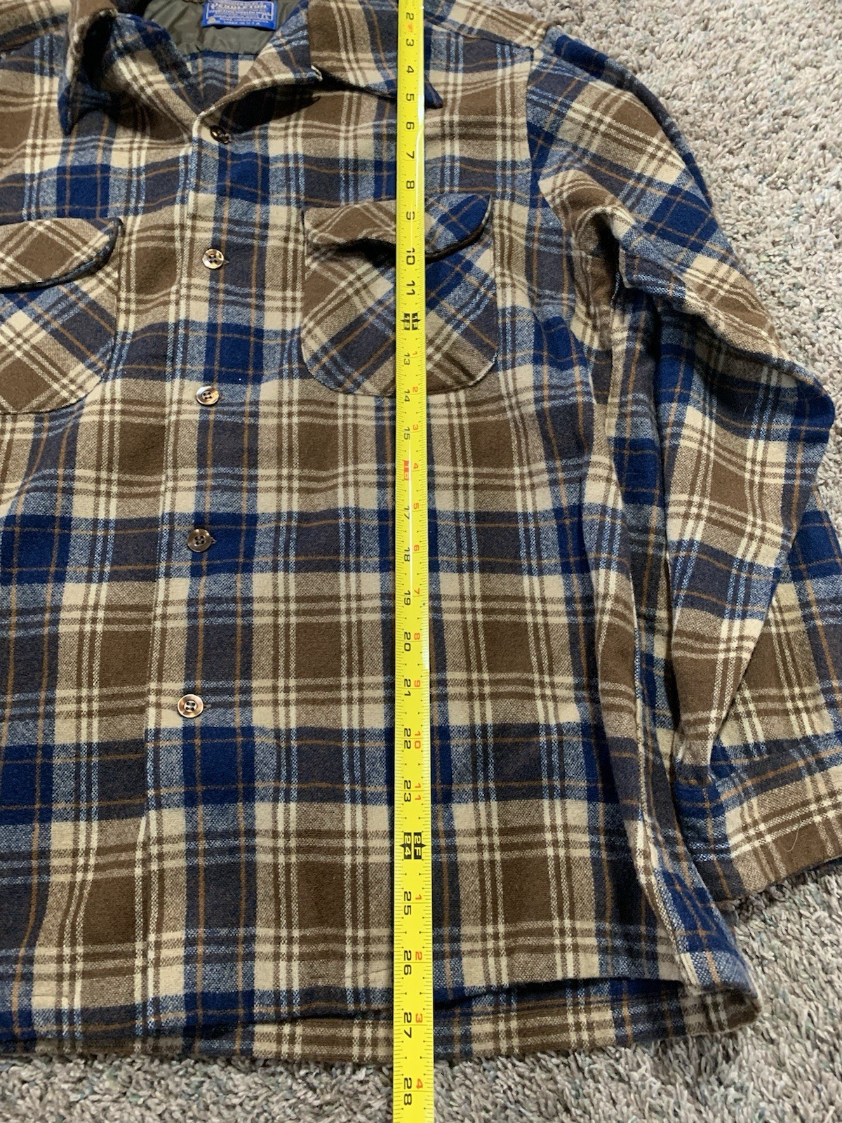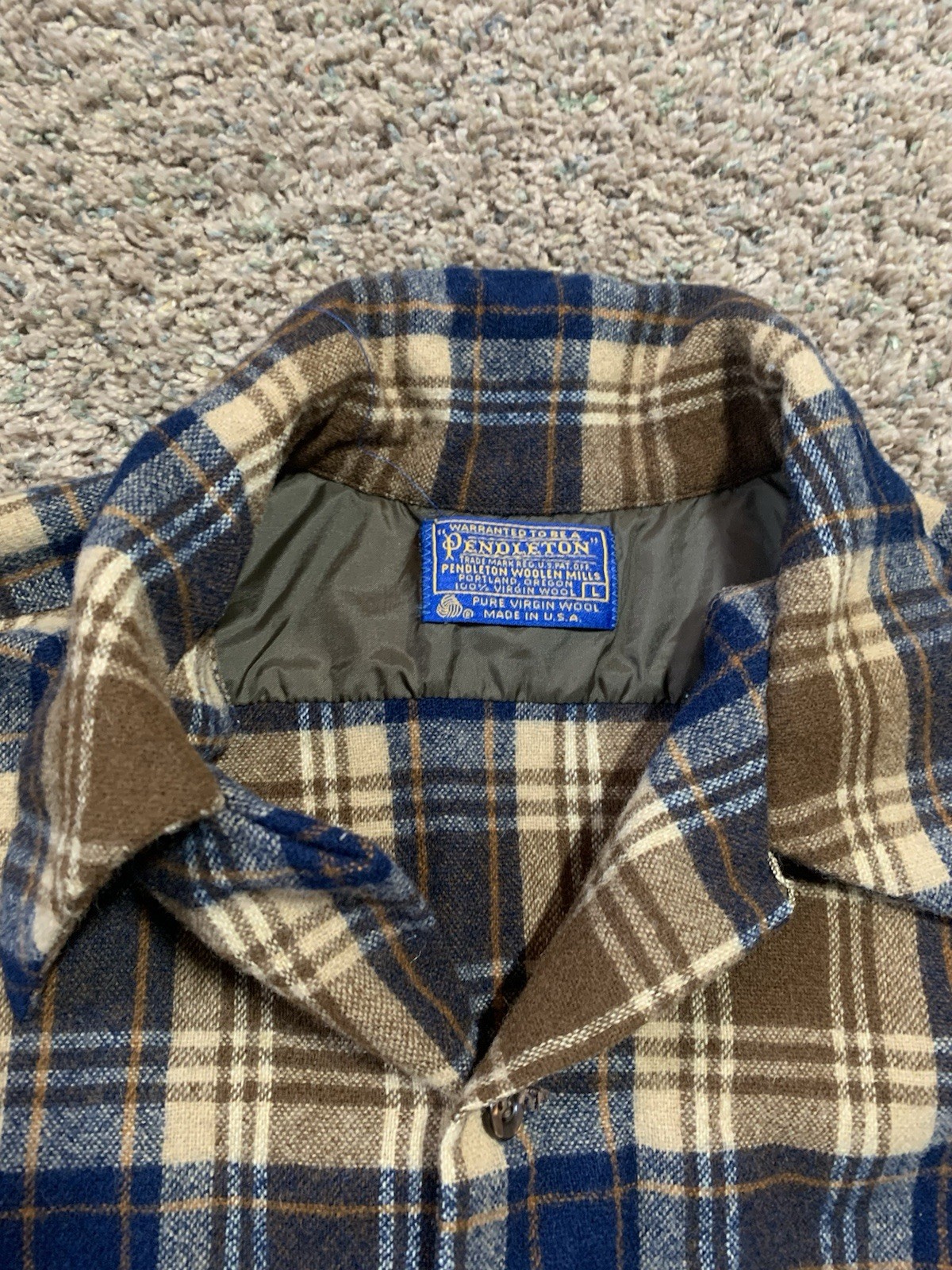 как выглядит Vintage Pendleton Plaid Board Shirt Wool Loop Collar Mens L USA Button Up фото