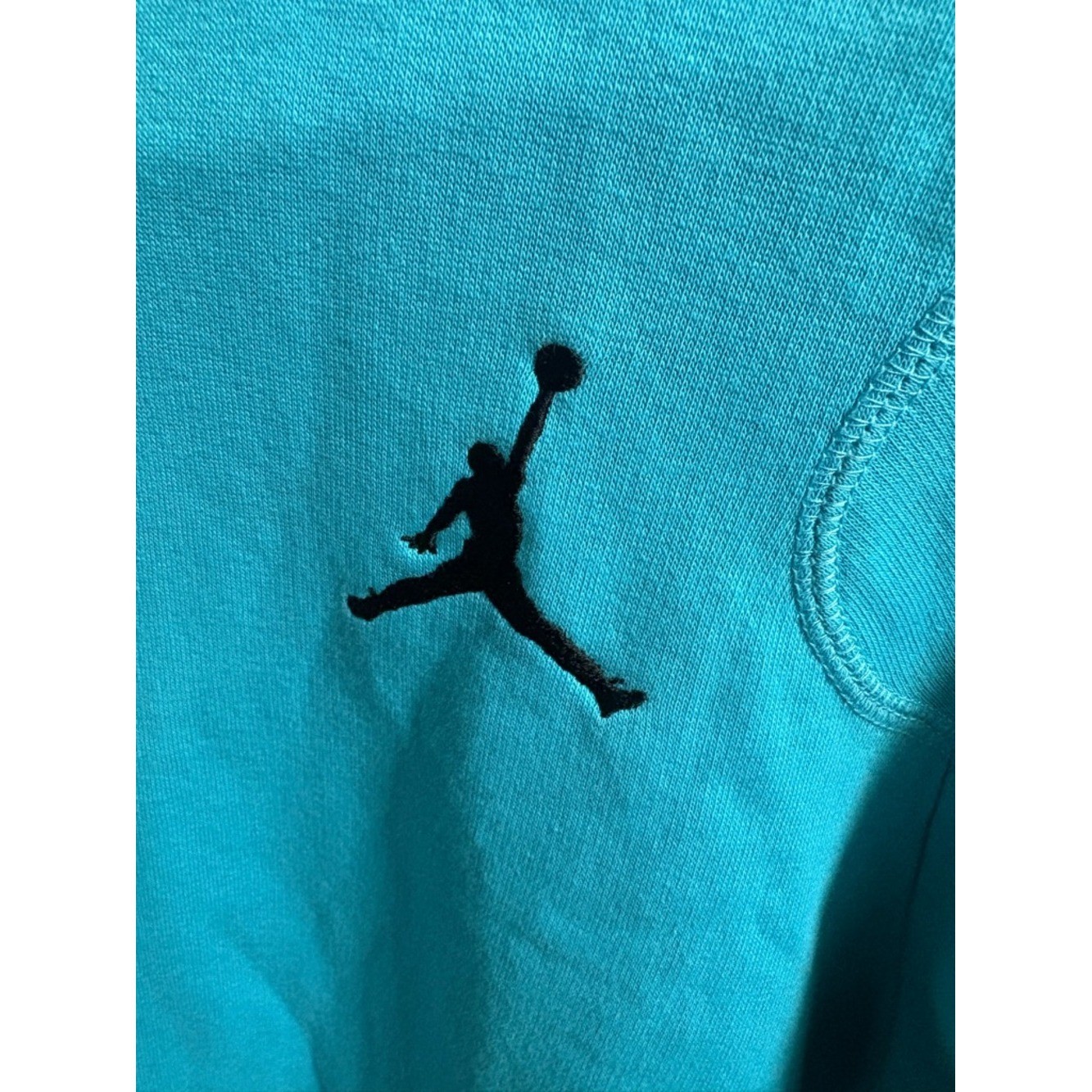 как выглядит Jordan Mens Crewneck Sweatshirt - Turquoise with Black Jumpman фото