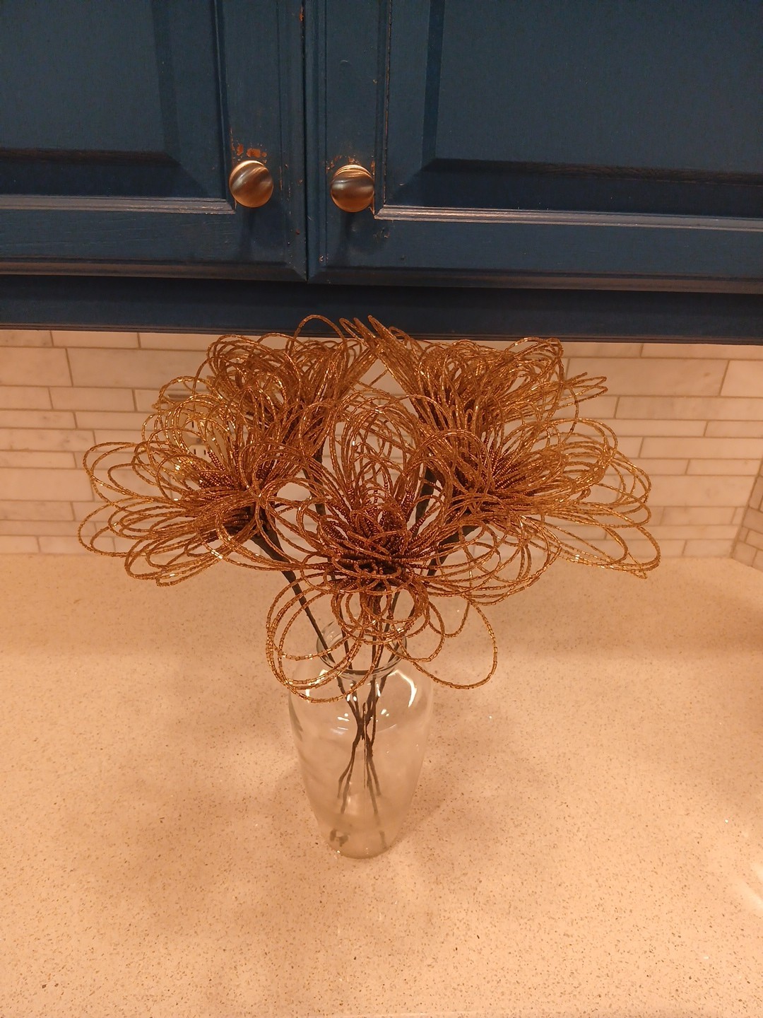 как выглядит Vintage 1950s French Handmade Glass Beaded Red Gold Flower Stems Set Of 20 фото