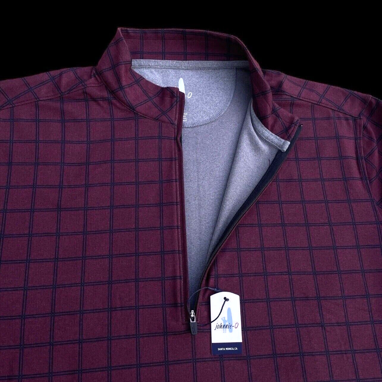 Johnnie-O Plaid Polar Fleece Quarter Zip Pullover Sweater Maroon Medium 138