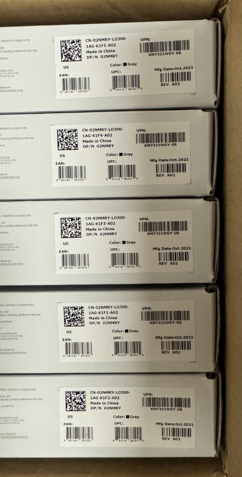 Lot of 5 New Dell Premier Multi-Device Wireless Keyboard and Mouse KM7321WGY-US