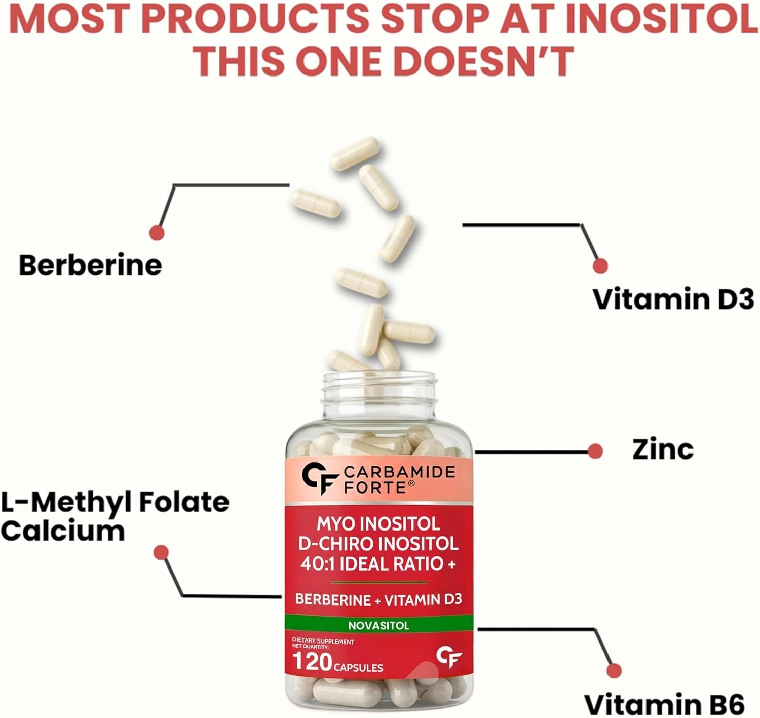 Myo Inositol D Chiro Inositol Supplement Hormonal Balance Support 120 Capsules