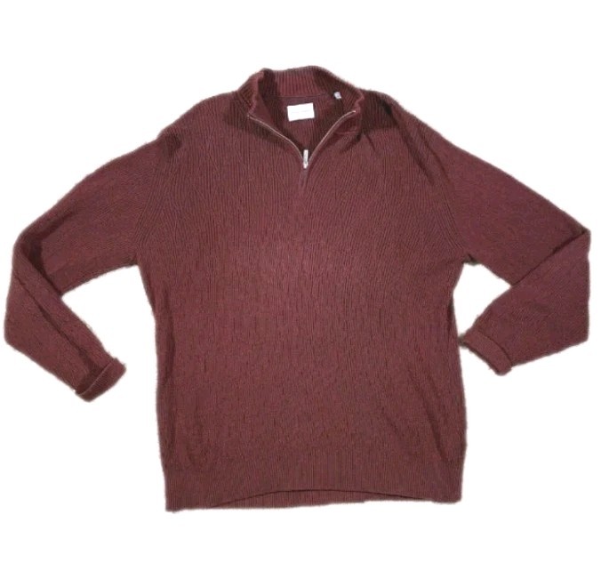 как выглядит Tommy Bahama Mens XXL 2XL Ribbed Knit 1/4 Zip Sweater Maroon Pima Cotton фото