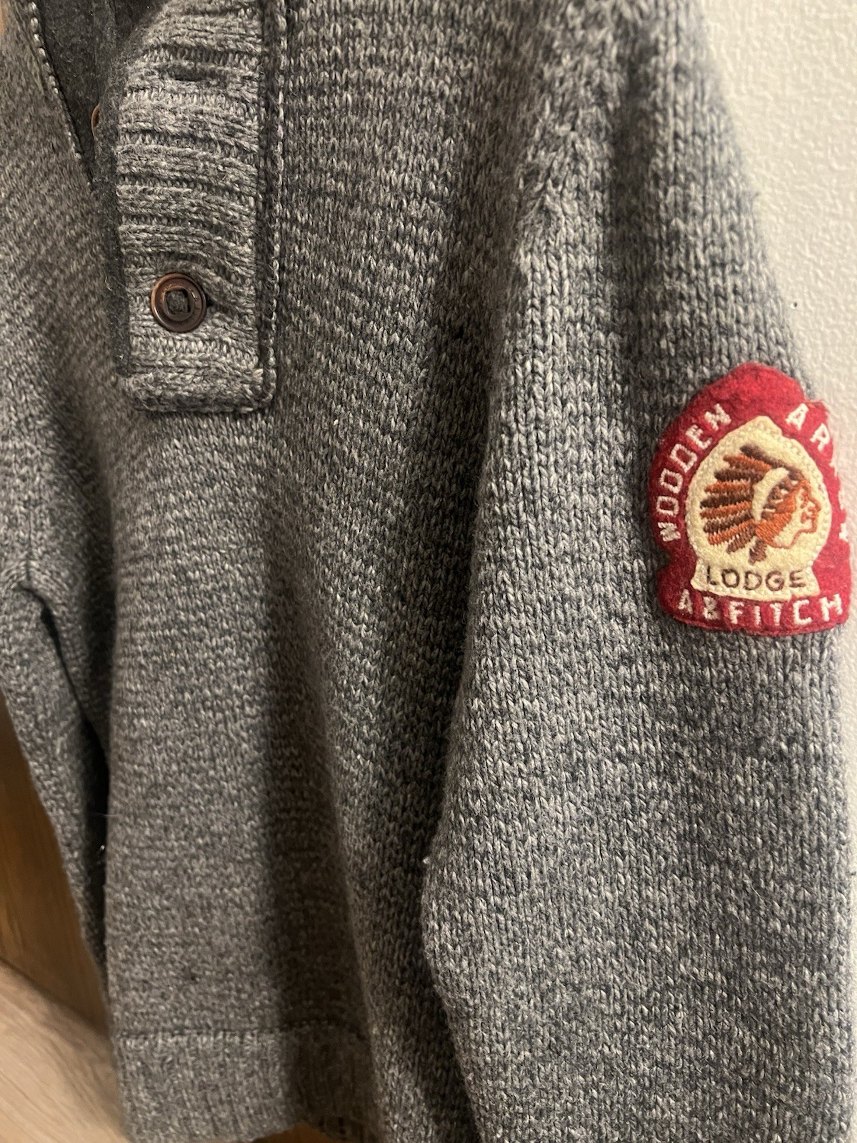 Abercrombie Fitch Wool Muscle Fit Gray Pullover Sweater Button Patch Men's S