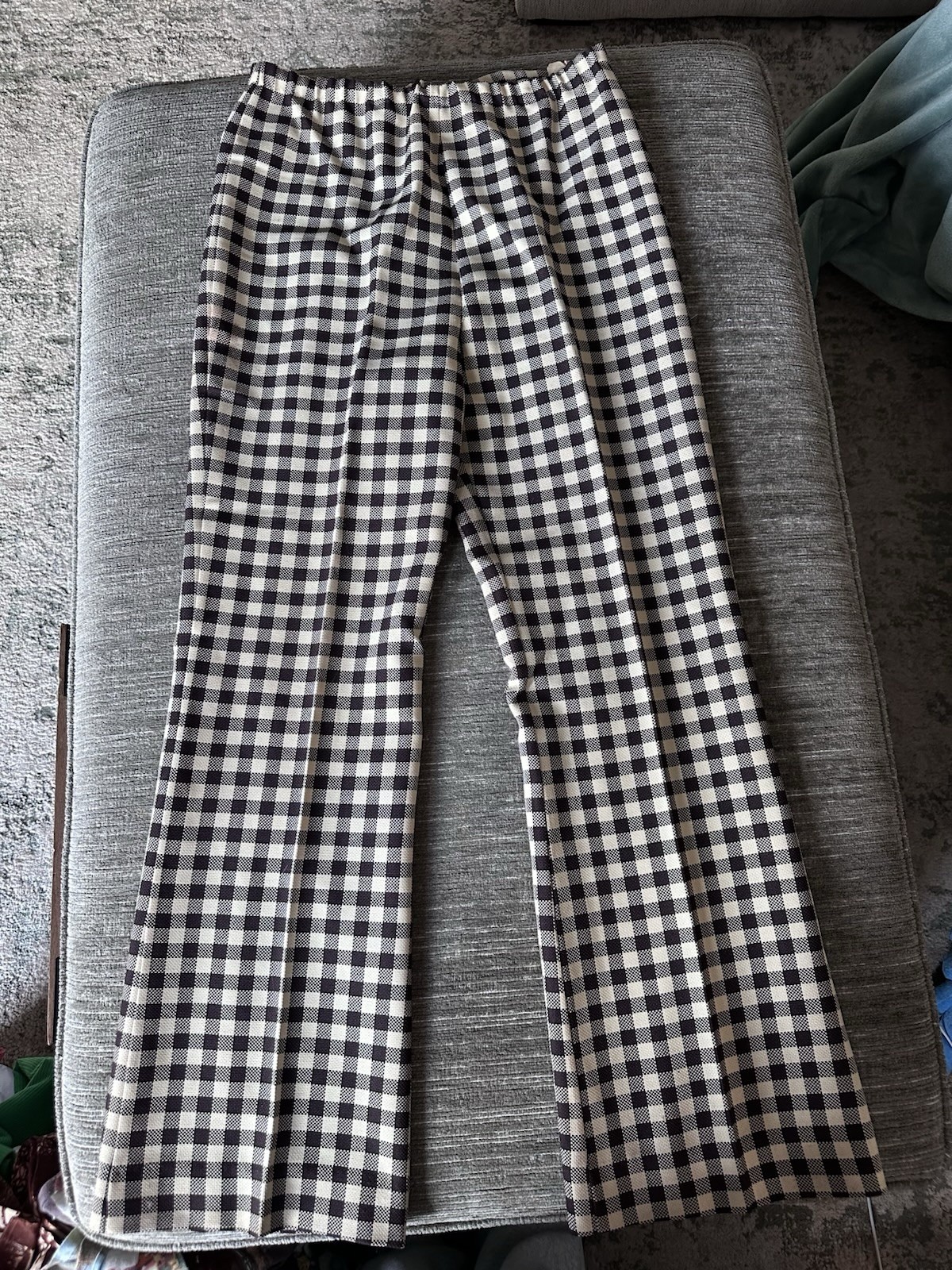 как выглядит VTG 70s Checks Bell Bottom Pants 12 High Rise Back ZipperLinen Blend Brown/cream фото