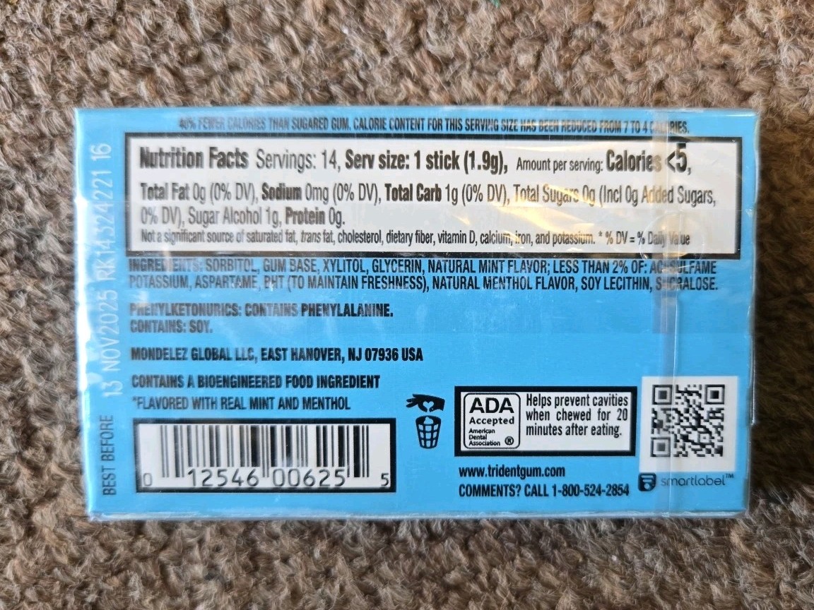 как выглядит Rare Trident Purely Peppermint Sugar Free Gum, 12 Packs of 14 Pieces 168 Total фото