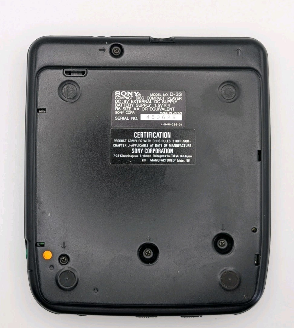 Vintage Sony Discman Mega Bass D-33 Black Works
