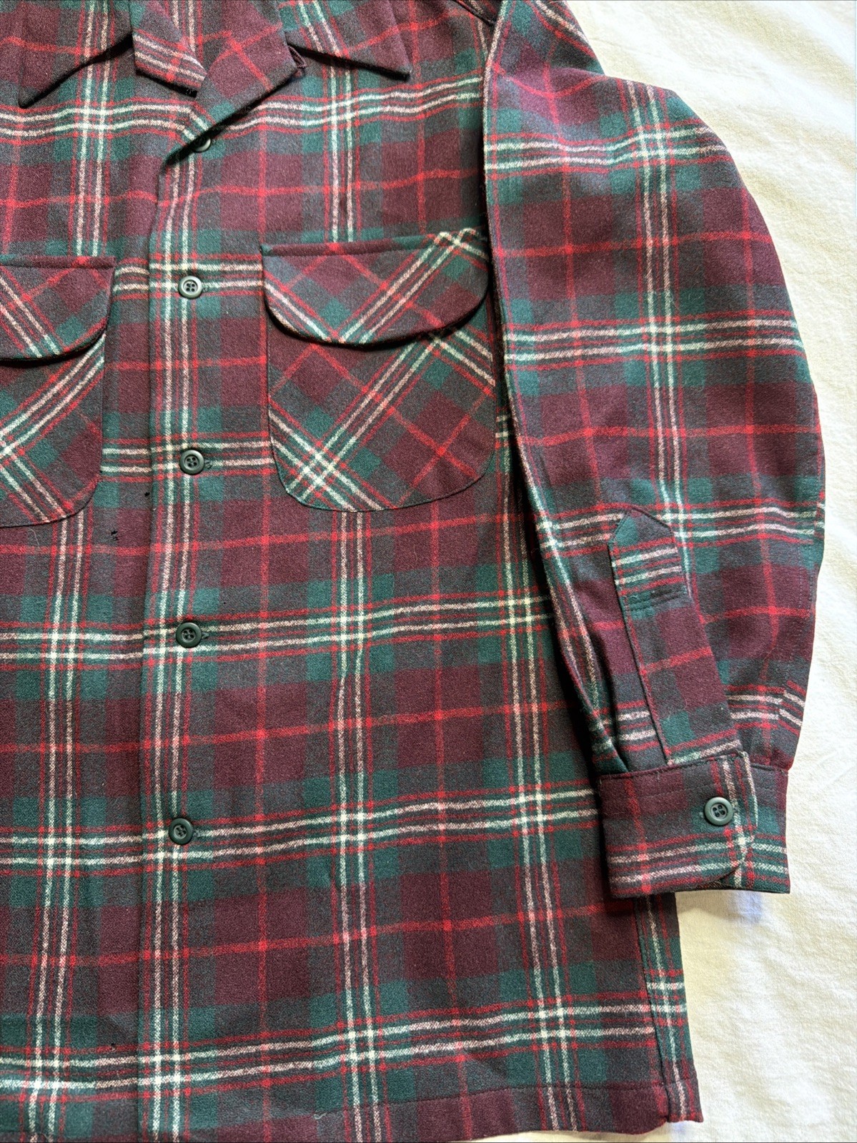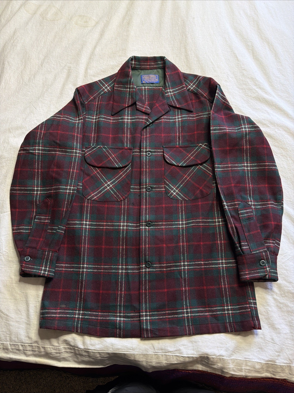 как выглядит Pendleton 1960s Wool Board Shirt Mens S Plaid Loop Collar USA Loop Vintage 70s фото