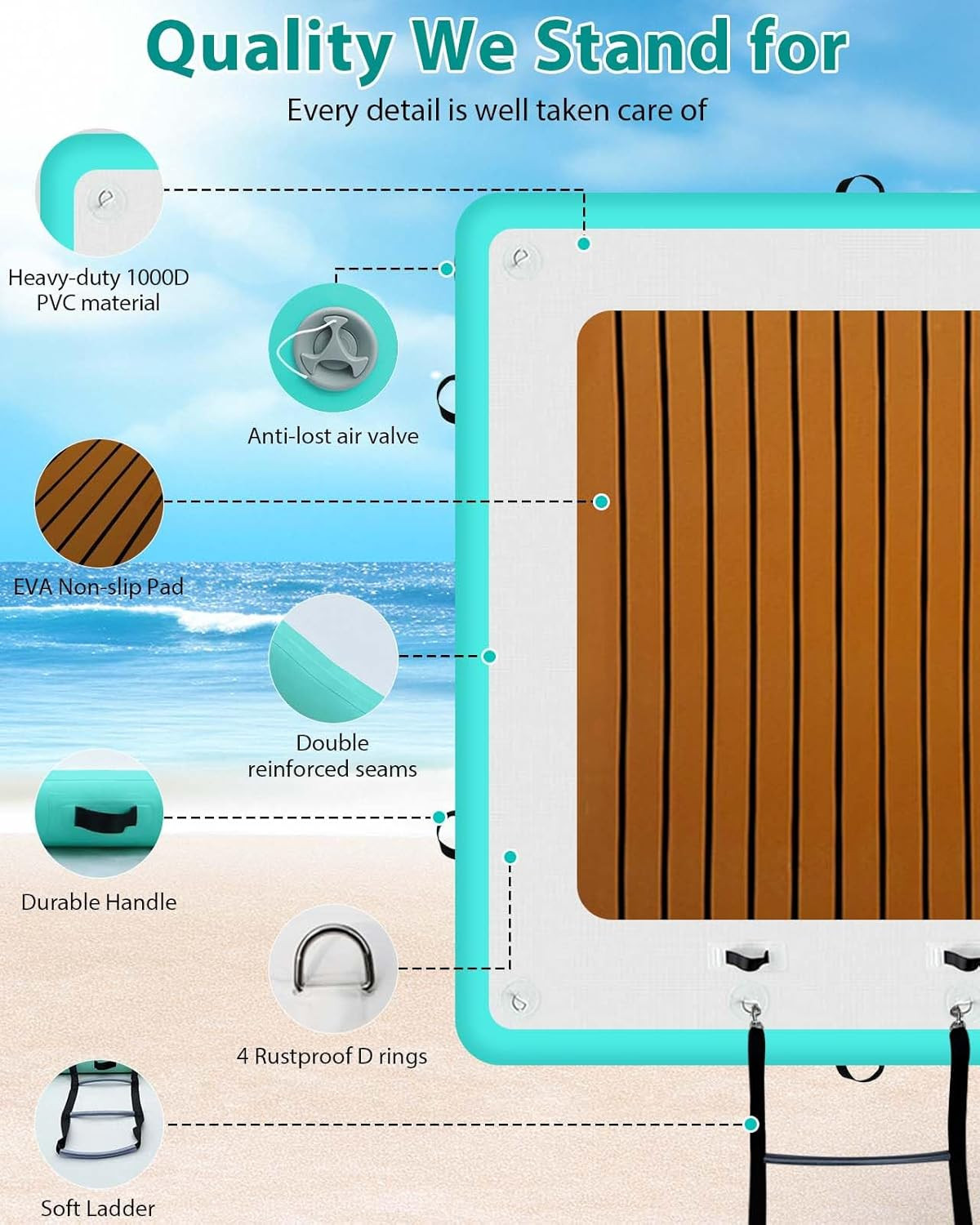 Inflatable Floating Dock Platform for Lake Sea Swimming Pool Water Boat 6Ft/8Ft/