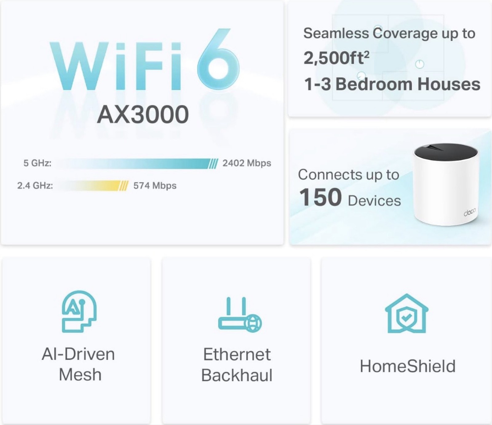 TP-Link Deco X55 AX3000 WiFi 6 Mesh System 1-Pack Router