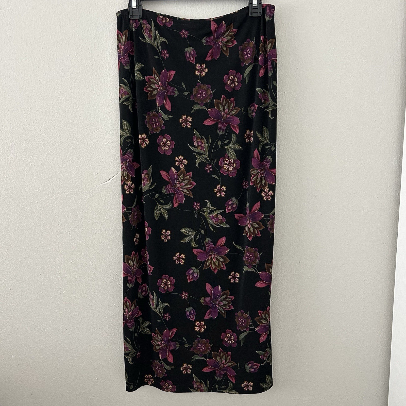 Vtg Maxi Skirt Dark Floral Slinky 90s Cottage Forest Fairy Grunge Whimisgoth M