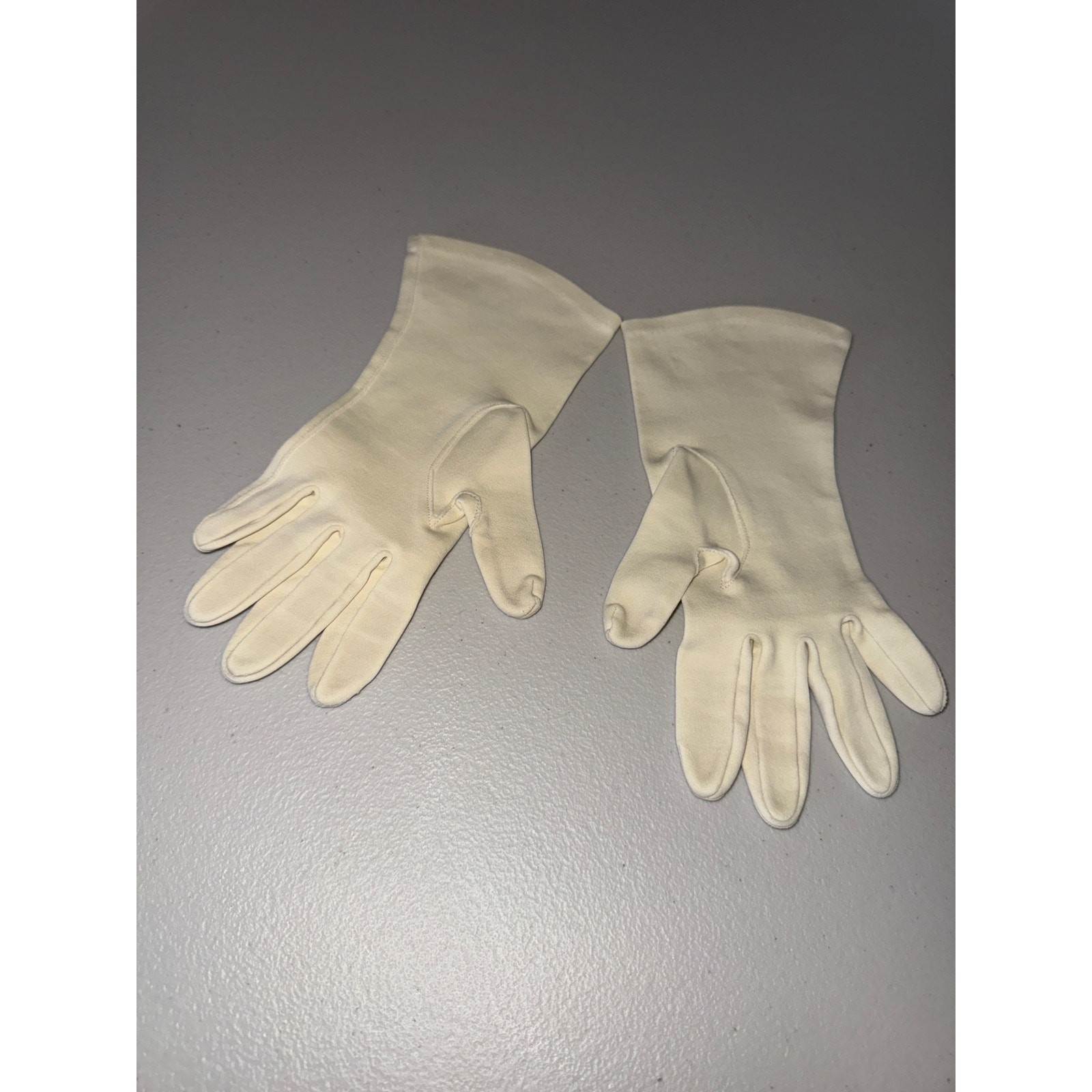 как выглядит Womens Vintage Cream Driving Gloves 100 Cotton Bow Leaves Embroidered 7 Holiday фото