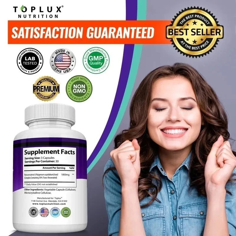 3PCS Resveratrol Supplement 1800mg Natural Antioxidant