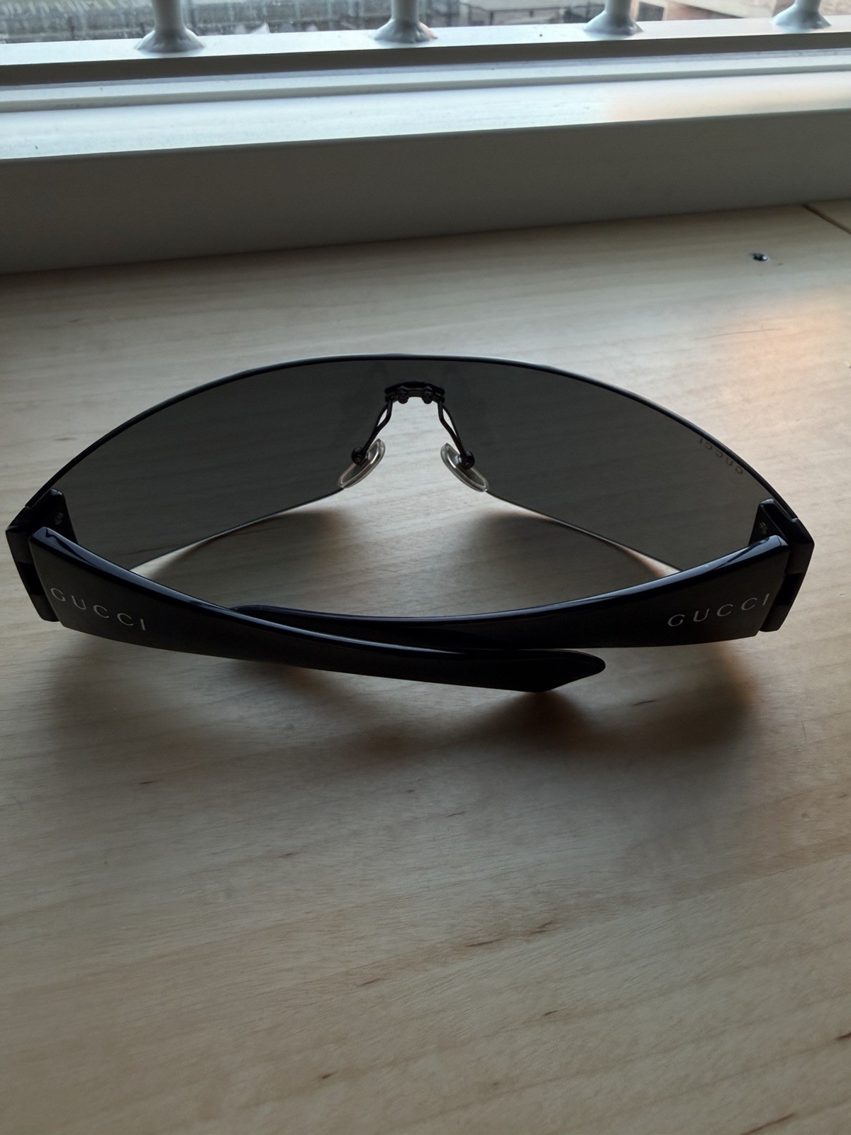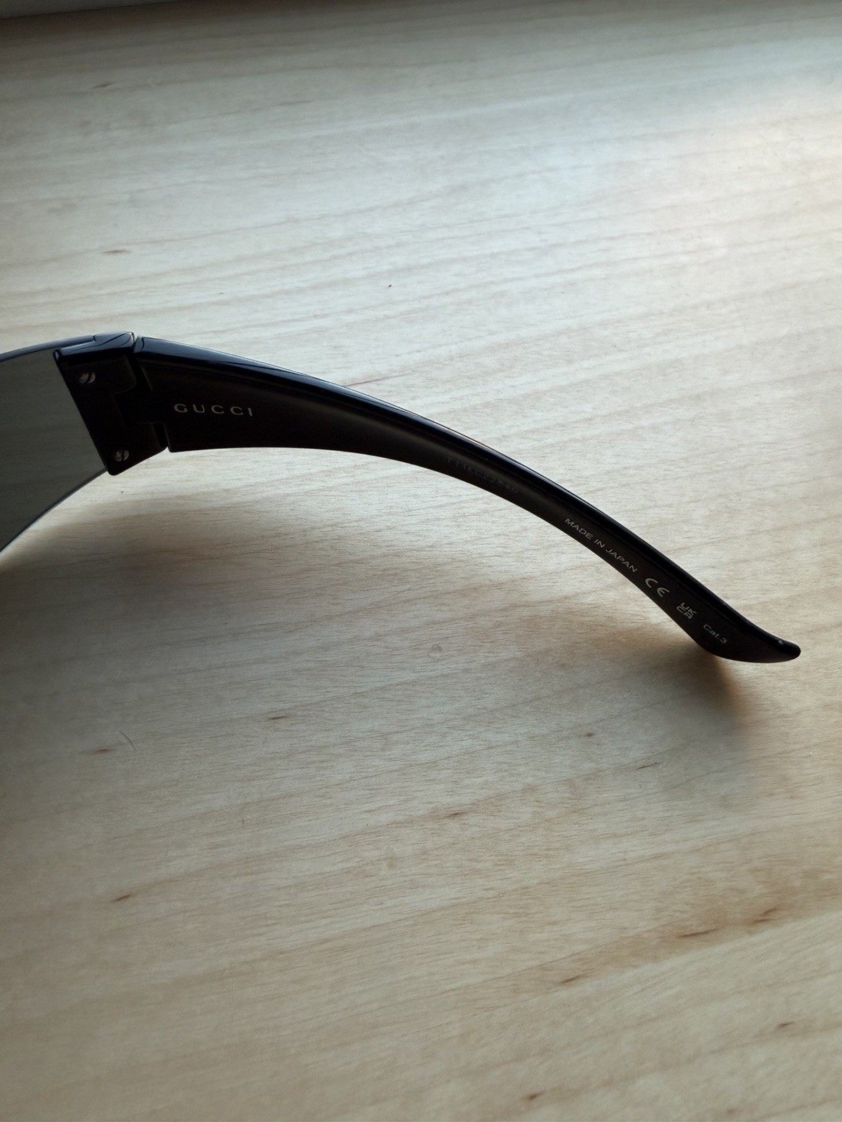 как выглядит Gucci GG1958S 002 Shield Oversized Black Sunglasses Gray Tinted Lenses Unisex фото