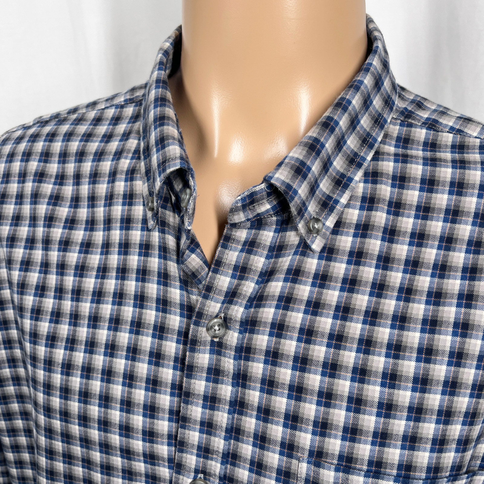 как выглядит Eddie Bauer Mens XL Gray Blue Plaid Classic Long Sleeve Flannel Button-Up Shirt фото