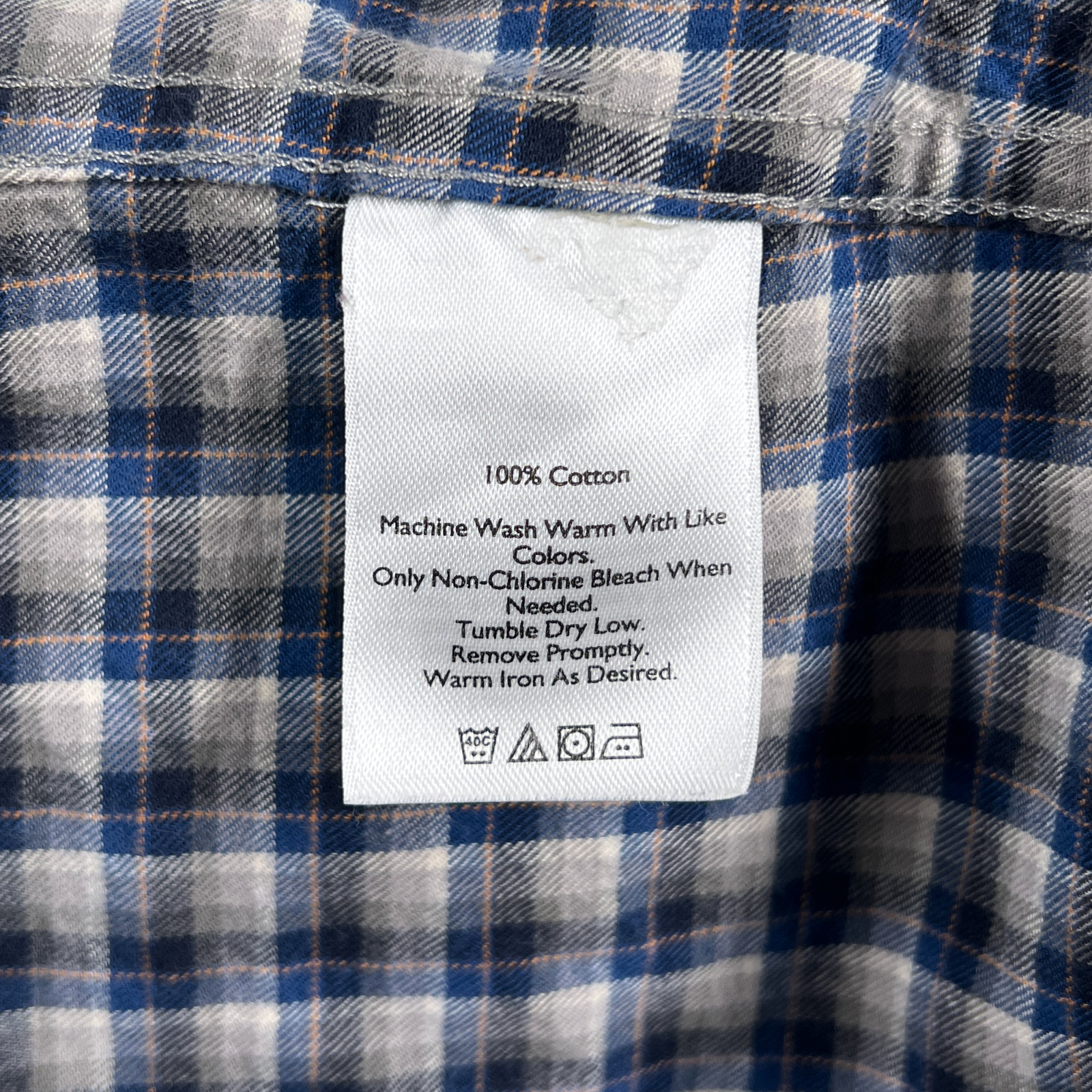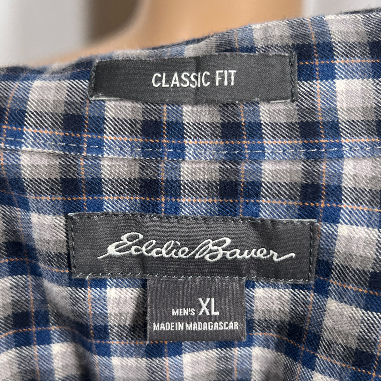 Eddie Bauer Men's XL Gray Blue Plaid Classic Long Sleeve Flannel Button-Up Shirt