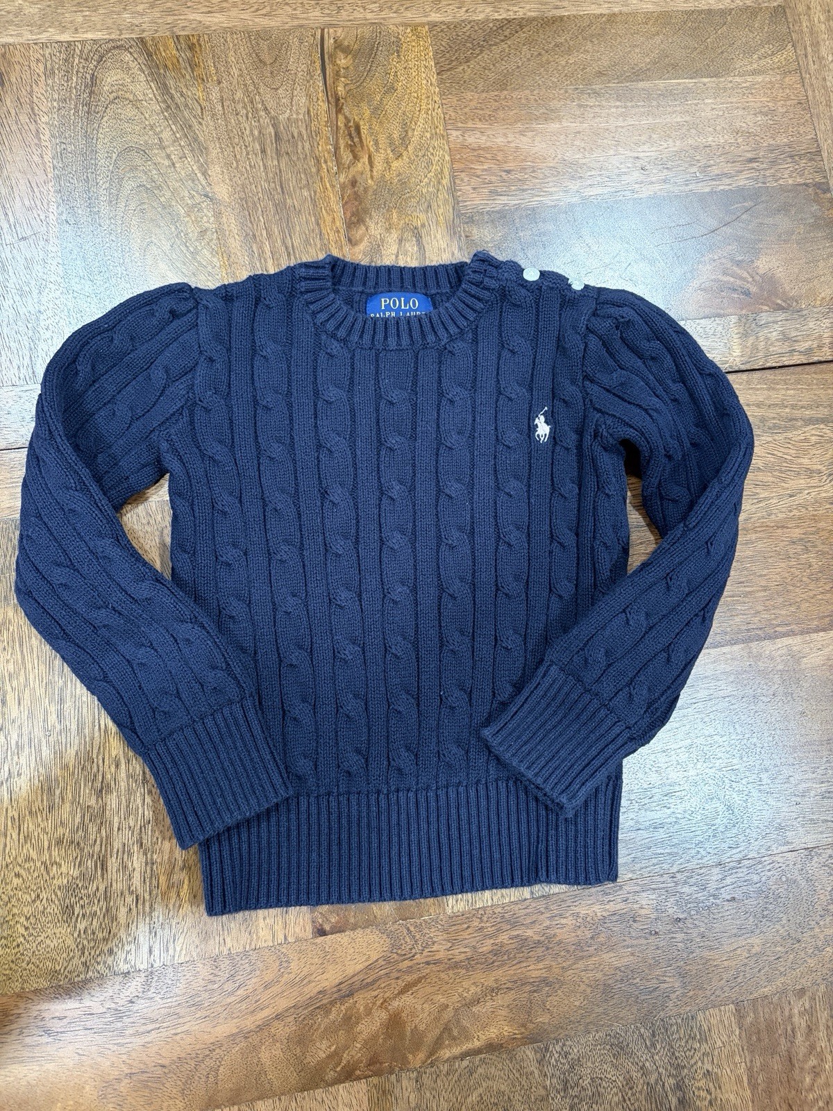 Polo Ralph Lauren Kids Navy Blue Cotton Cable Knit Crewneck Sweater Sz 5