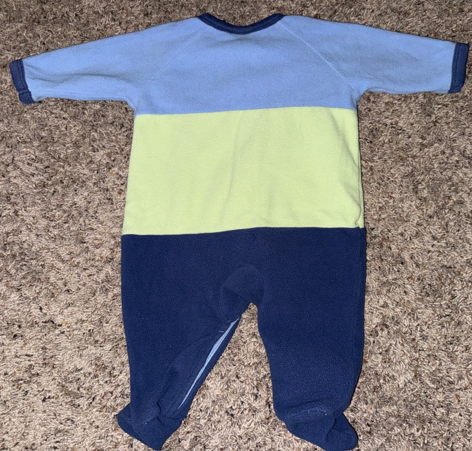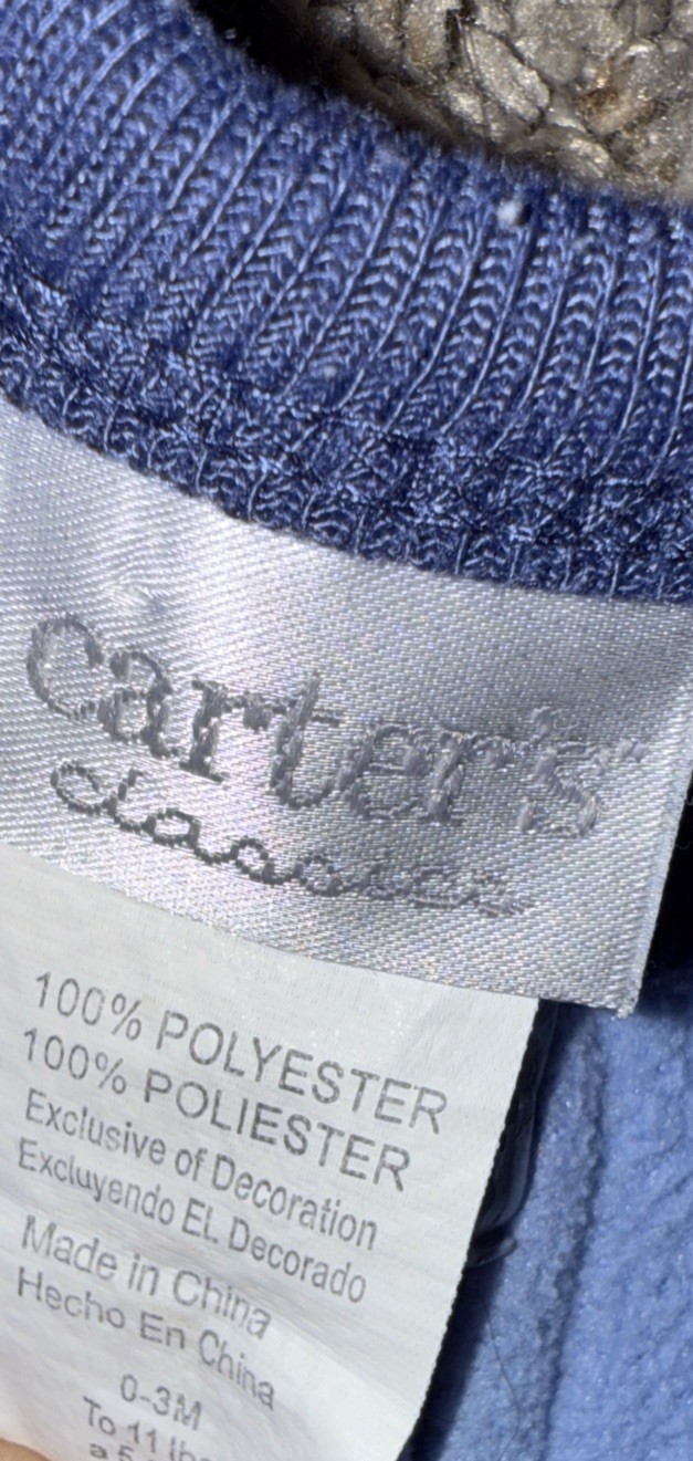Vintage Carter's Classics 0-3 Month Bear Blue Fleece Footed Pajama Y2K Baby Boy
