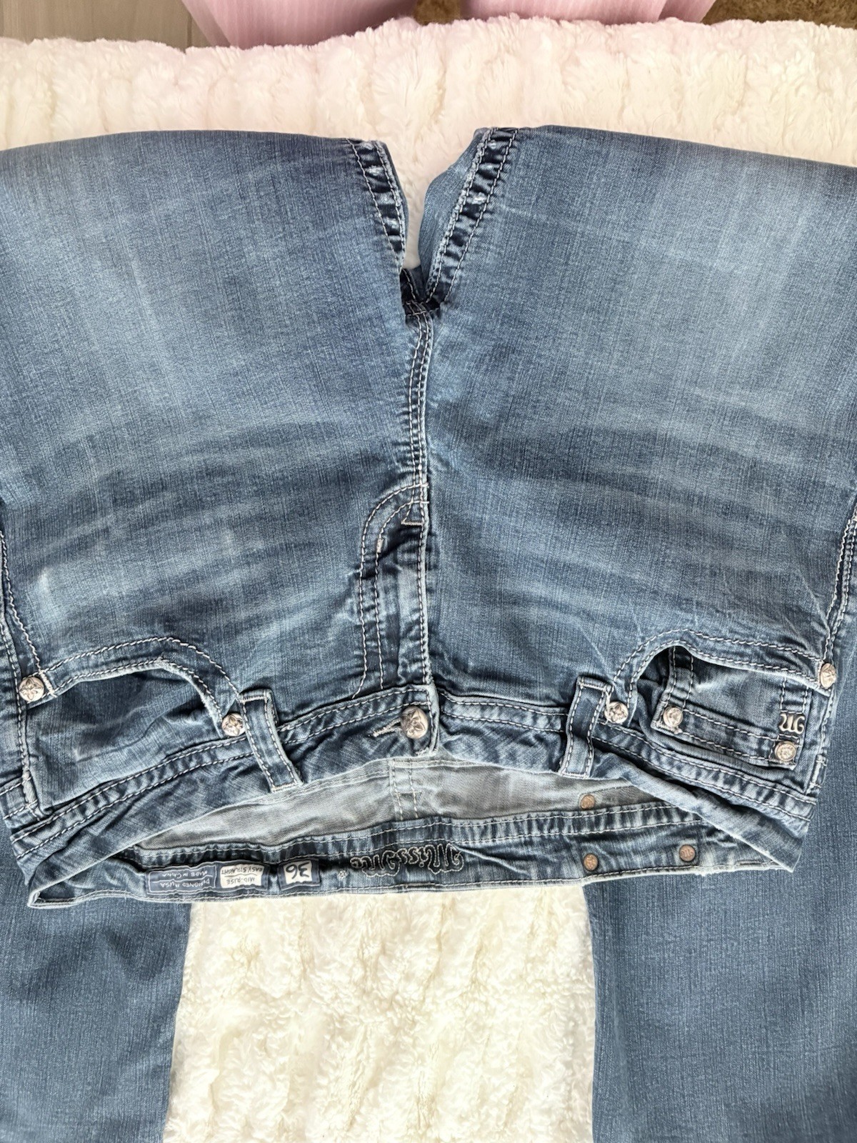 Miss Me Bootcut Jeans Blue Embellished Embroidered Wing Back Pockets Distressed