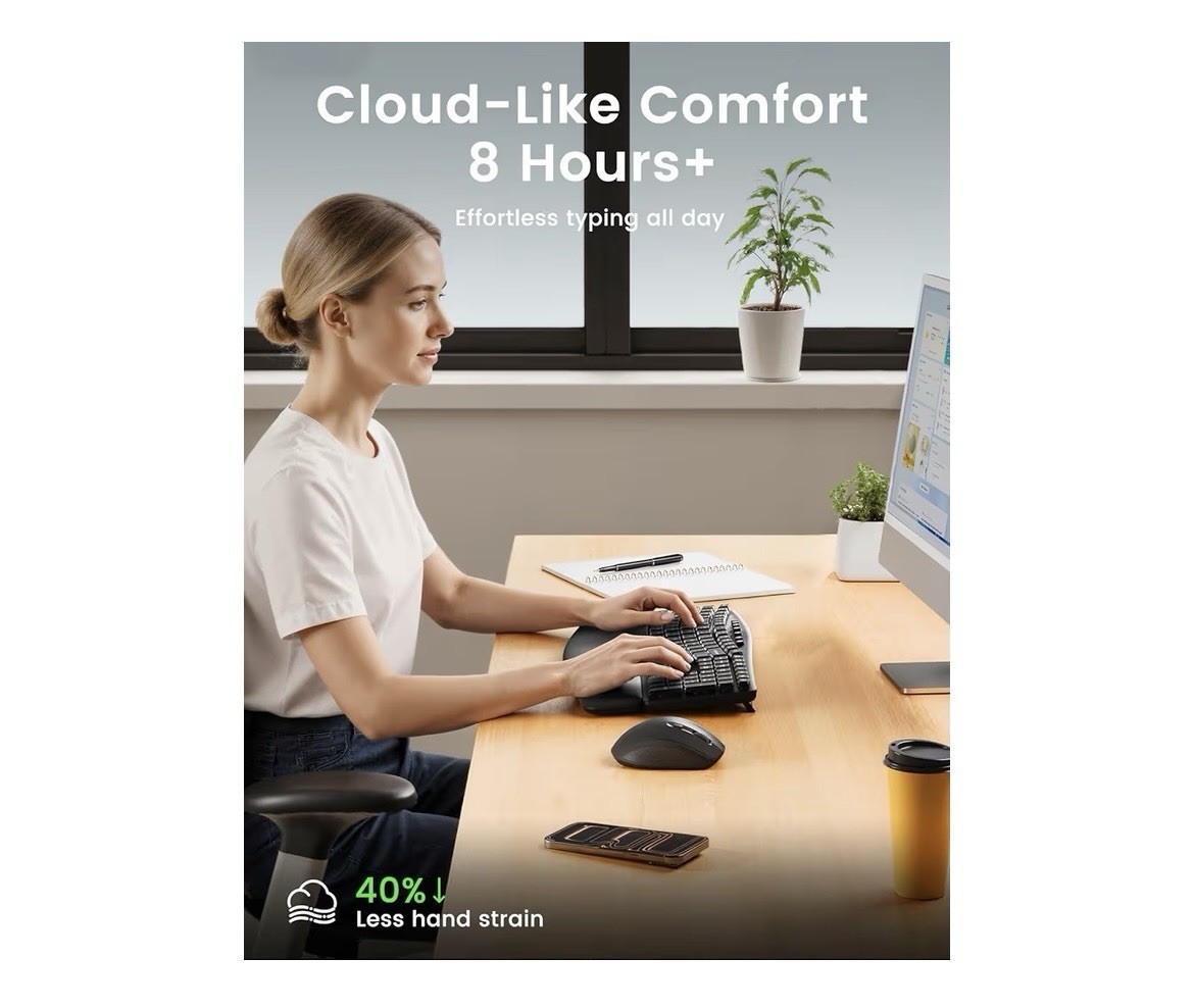 Ergonomic Wireless Keyboard And Mouse Combo, 30dB Quiet Full Size Keyboard Set