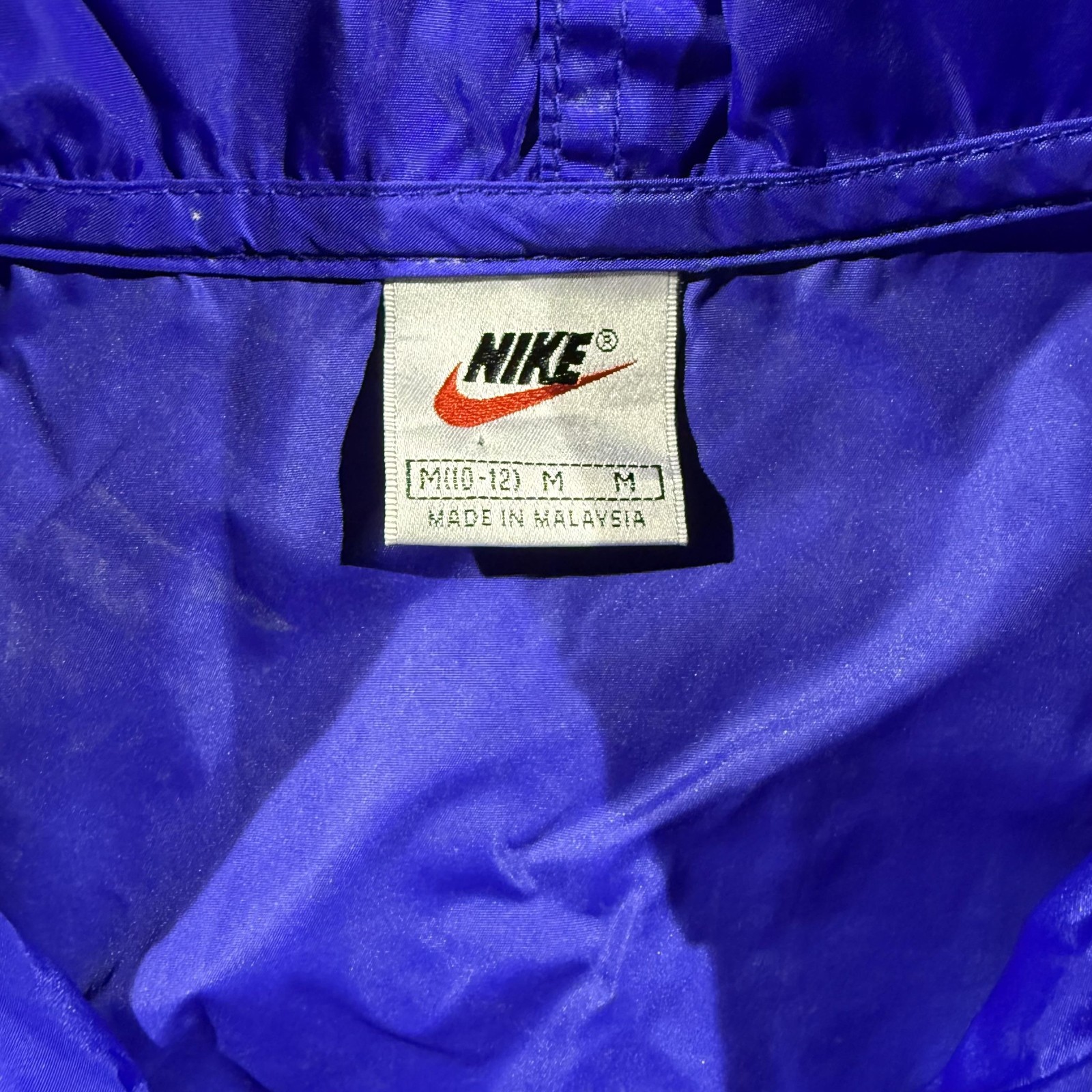 Vintage Nike Jacket Kids Medium 10-12 Blue Nylon Swoosh Snap Windbreaker 90s