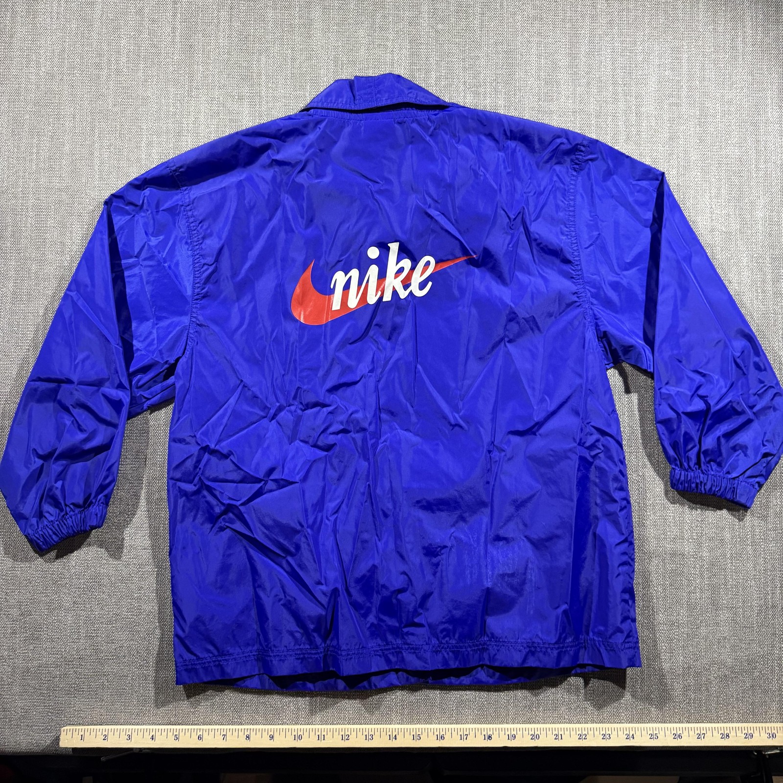 как выглядит Vintage Nike Jacket Kids Medium 10-12 Blue Nylon Swoosh Snap Windbreaker 90s фото
