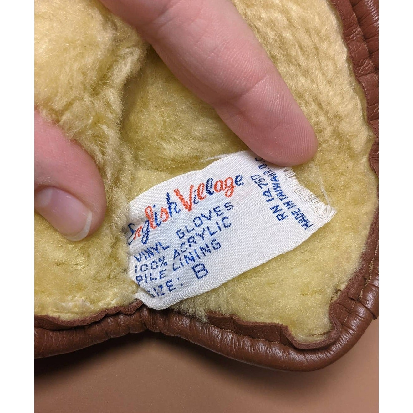 как выглядит English Village Faux Leather VINTAGE Gloves Faux Fur Lined Size B Metal Accents фото