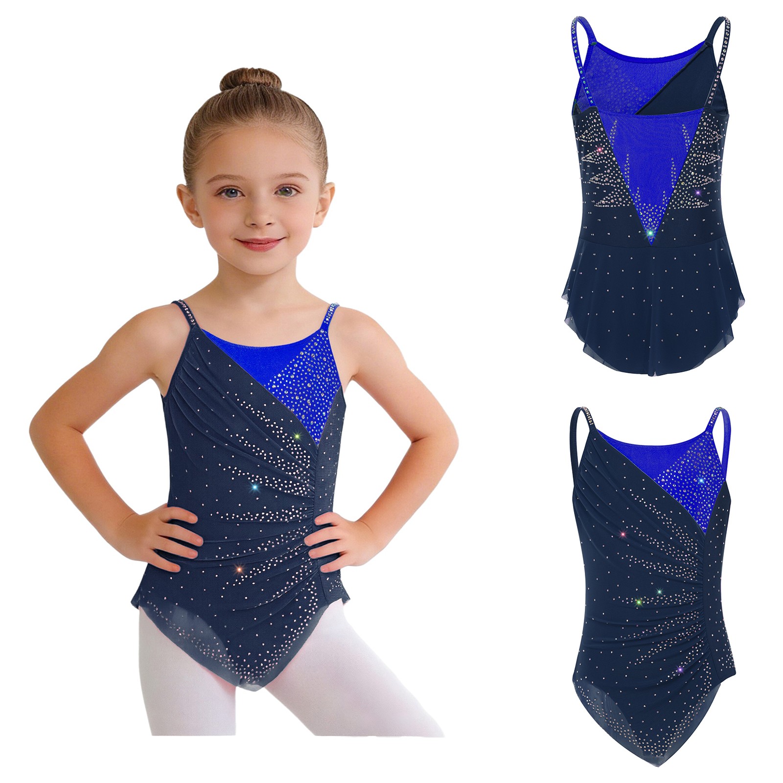как выглядит Girls Figure Sparkly Dance Costume Dance Leotard With Built-in Briefs Skating фото
