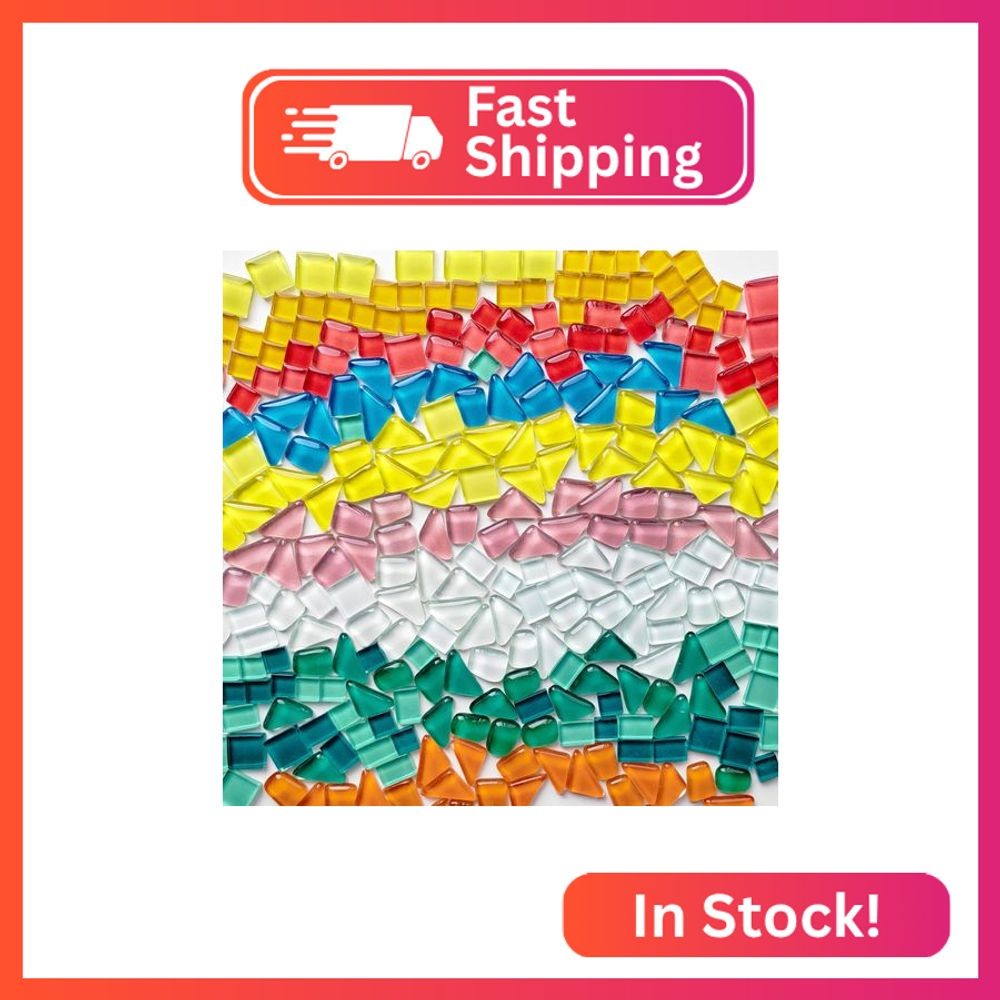 AONUOAO 1.1LB/500g Irregular Crystal Glass Mosaic Tiles with Mixed Colors for Cr