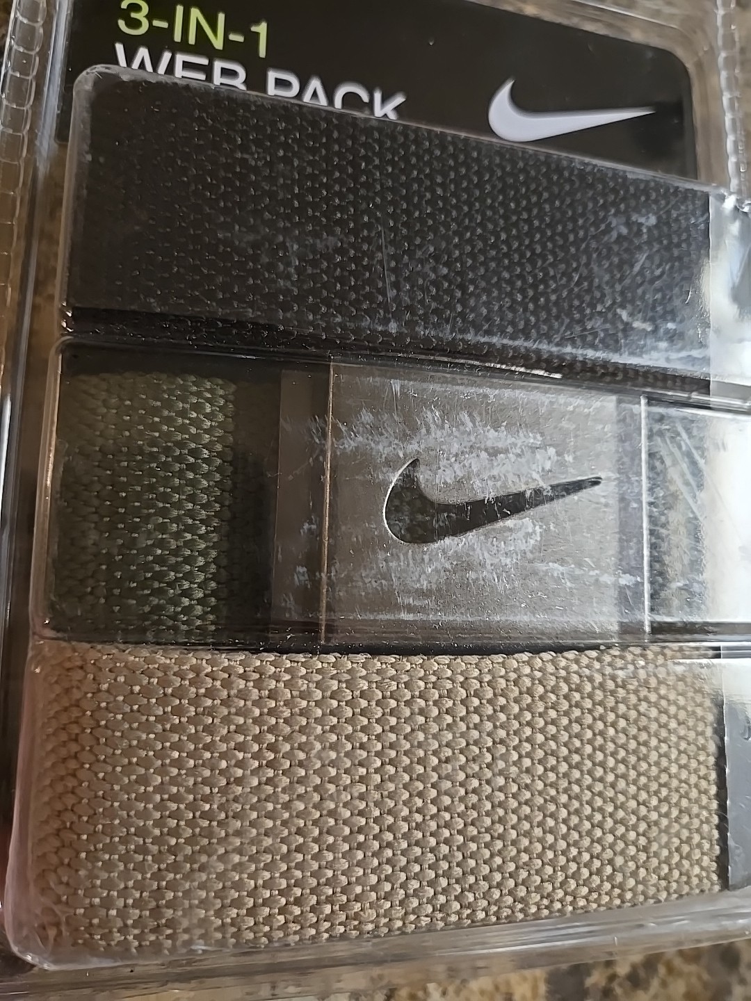 как выглядит NEW Nike 3-In-1 Web Pack Black/Khaki/Dark Green Golf Belt Cut-To-Length OSFM фото